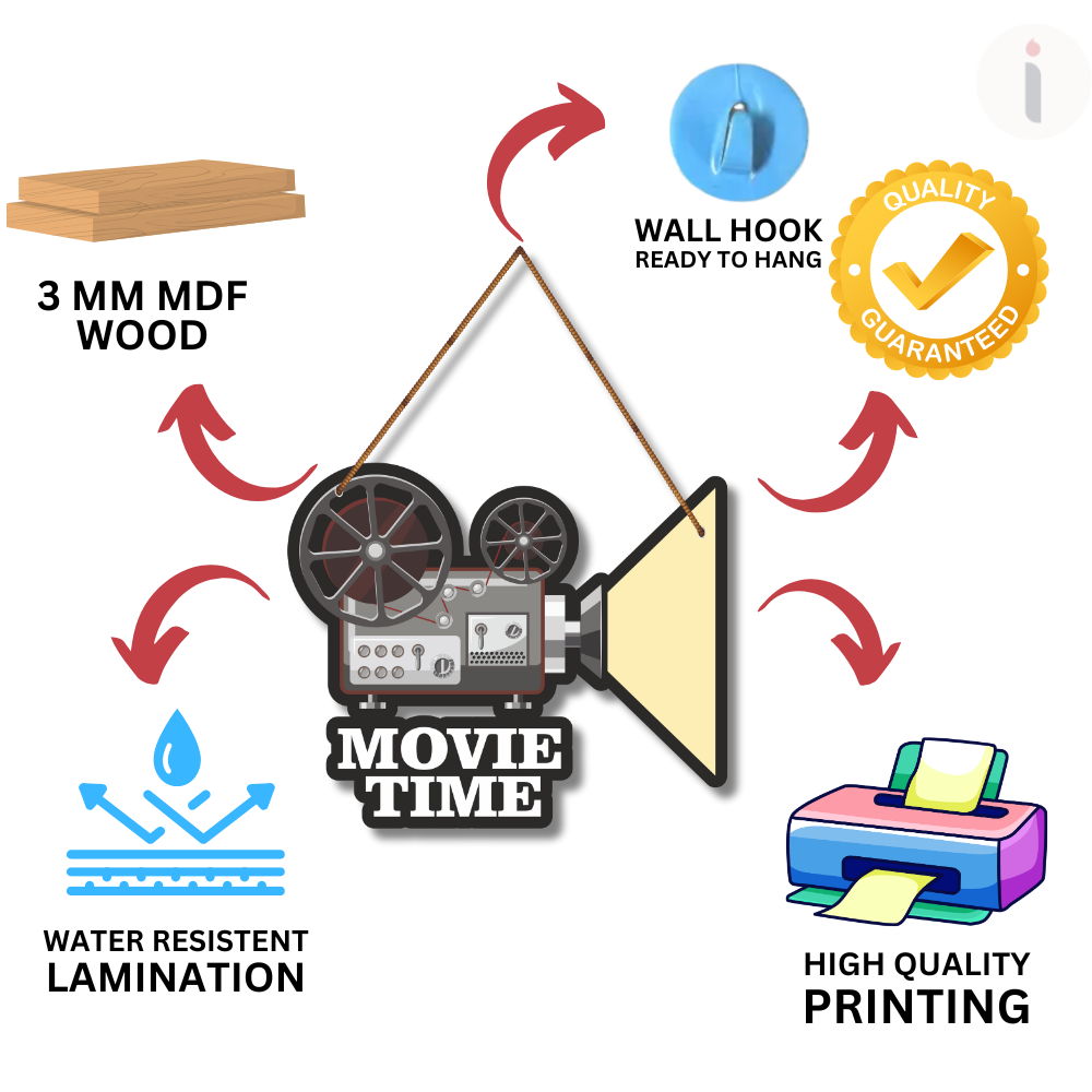Bring the magic of the big screen into your home with this stylish Movie Time wall hanging. Featuring a retro film projector design, it adds a nostalgic and fun touch to your décor. Perfect for living rooms, home theaters, or entertainment corners, this wall art sets the mood for cozy movie nights with friends and family.