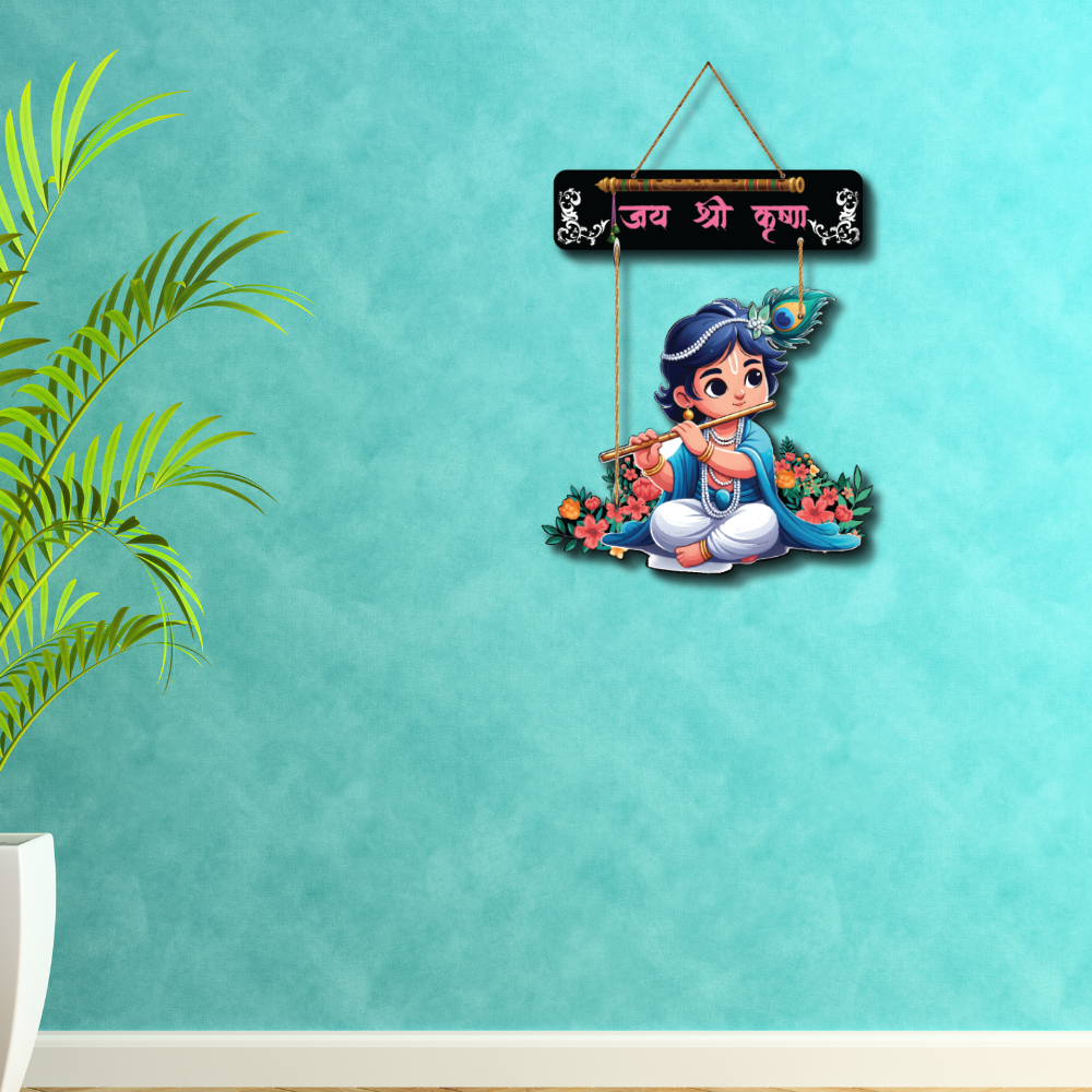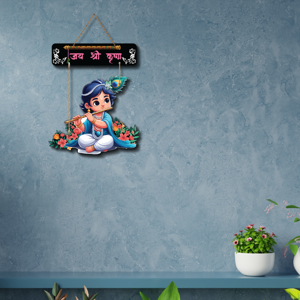 Bring divine joy and innocence to your space with this “Jay Shri Krishna” wooden wall hanging 🦚🎶. Featuring adorable Bal Krishna playing the flute, it radiates love, positivity, and spiritual charm 💙✨. Perfect for homes, pooja rooms, or gifting, this décor adds a peaceful and devotional vibe to any corner 🌸🙏.