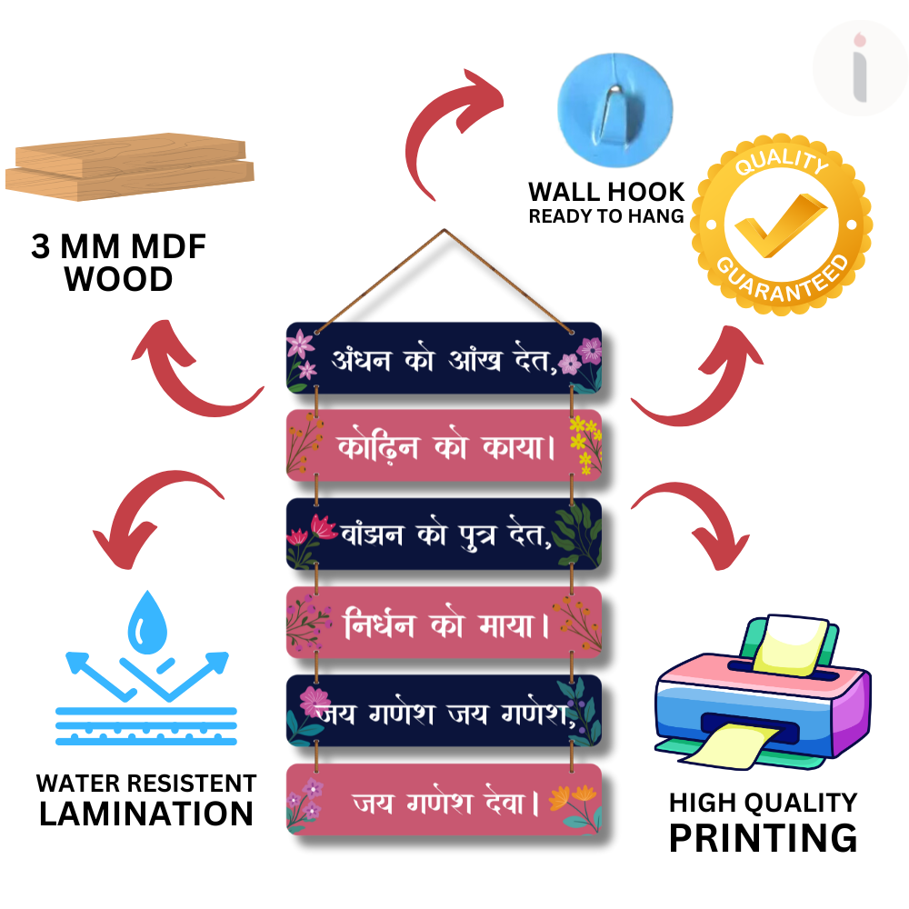 Invite divine blessings and positivity into your home with this Ganesh Ji Wooden Wall Hanging 🙏✨. Featuring the devotional lines “जय गणेश जय गणेश”, it symbolizes healing, prosperity, strength, and protection for every devotee 🕉️🌺. Perfect for mandir walls, living rooms, offices, shops, and gifting on festivals 🎁🪔. Let Bappa remove obstacles and fill your space with peace and success 🌿✨.