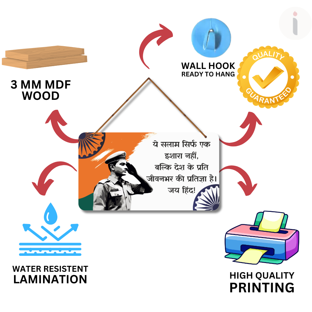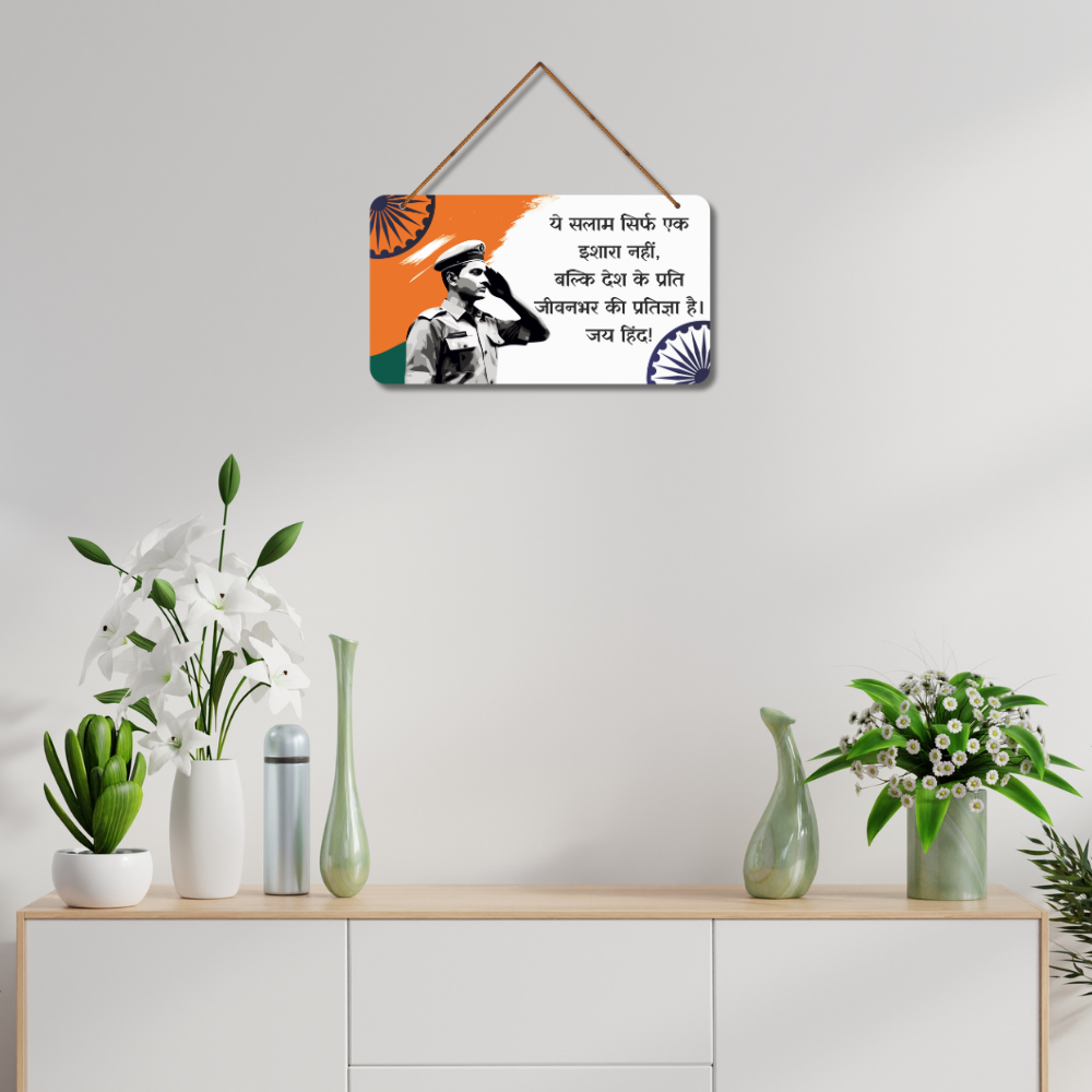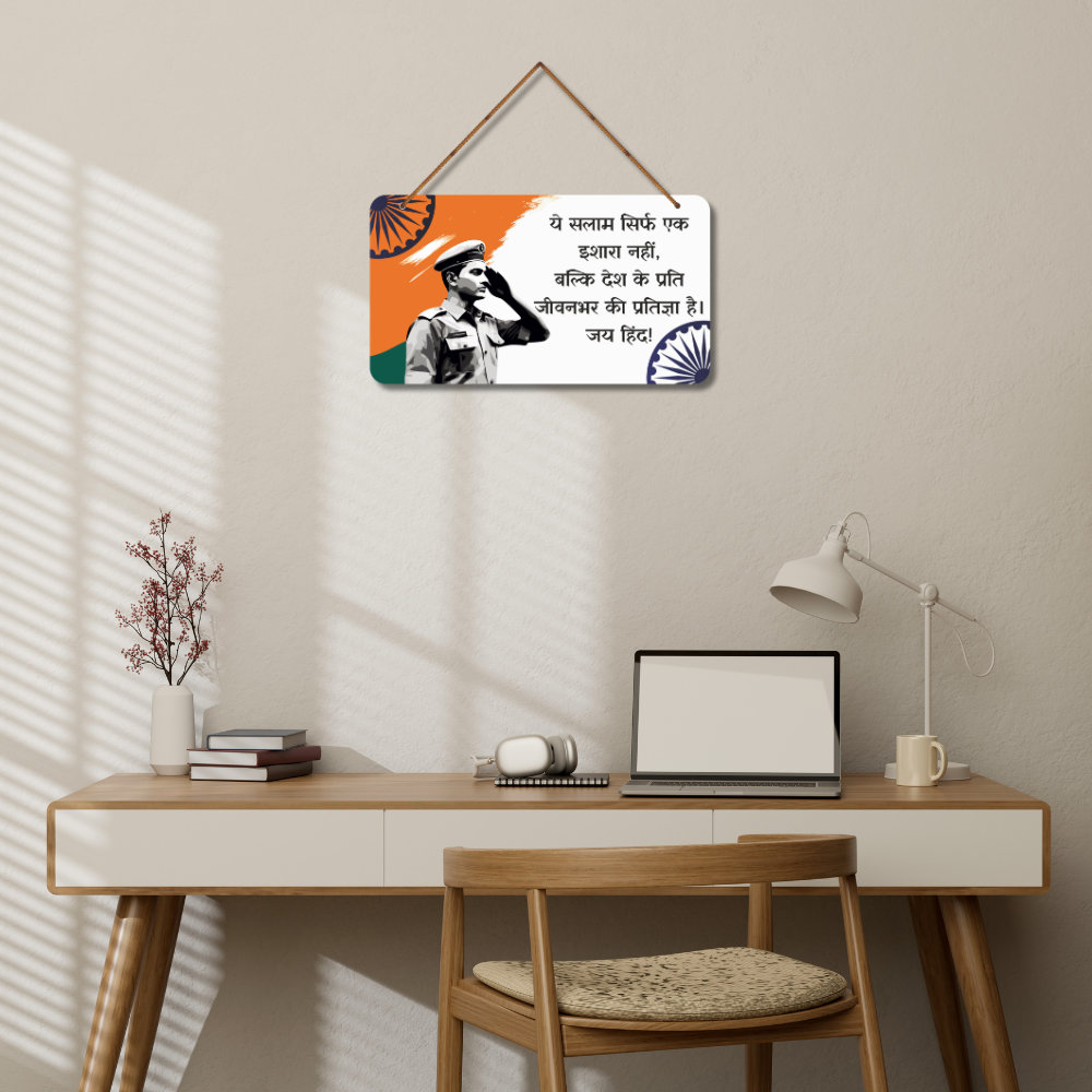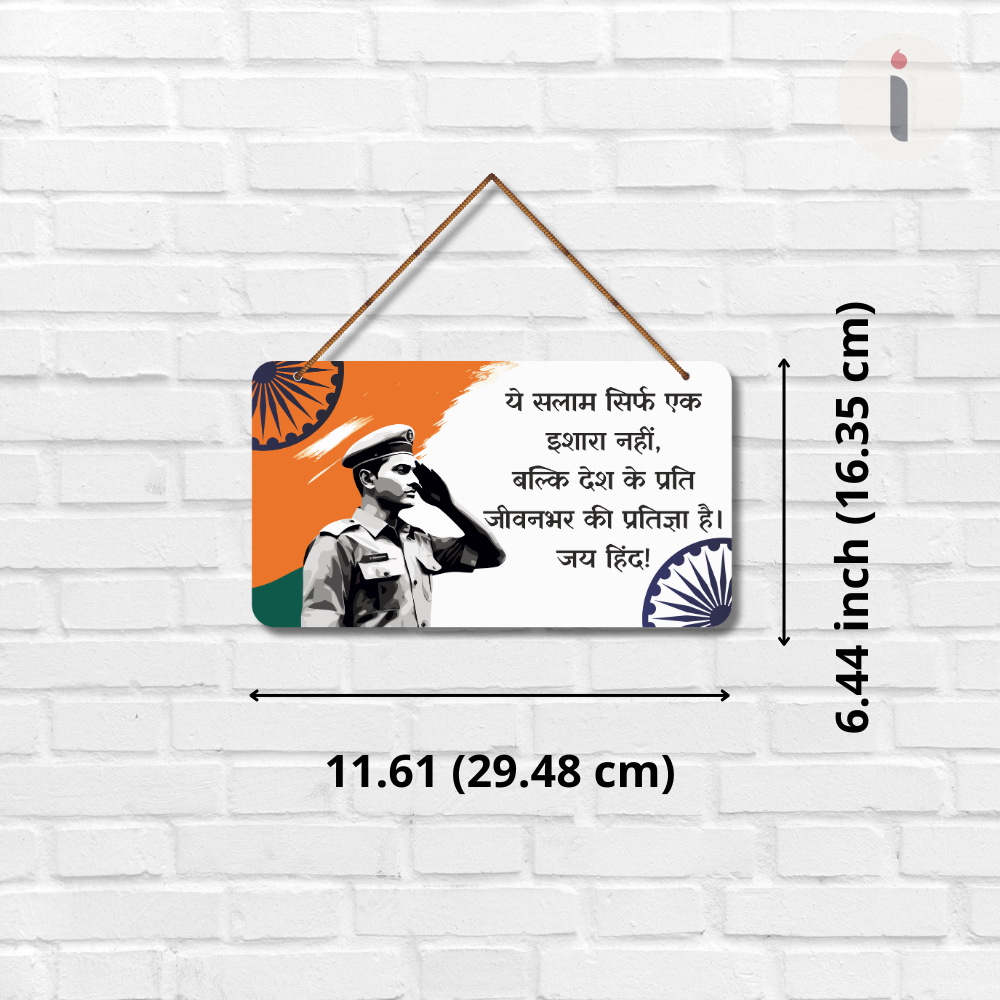 elebrate the spirit of patriotism with this Jai Hind Indian Army Tribute Wooden Wall Hanging 🇮🇳✨. Featuring a proud salute and heartfelt message, it reminds us that serving the nation is a lifelong promise ❤️👮♂️. Ideal for homes, schools, offices, defence décor, and gifting to Army personnel or patriots. Add pride and inspiration to any space – Jai Hind! 🇮🇳🕊️.