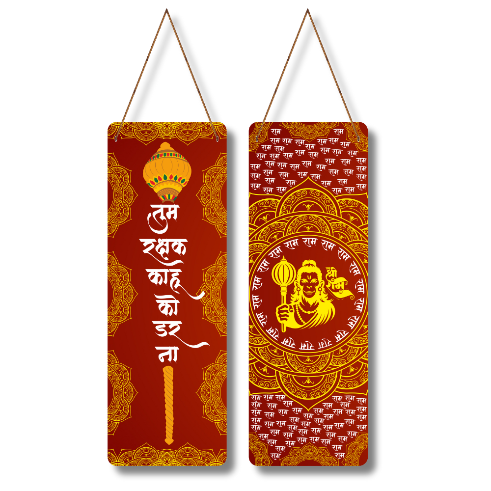 Invoke divine courage and strength with this Hanuman Ram Naam Wooden Wall Hanging 🙏🔥. Adorned with powerful mantras and vibrant artwork, it symbolizes protection and devotion. The message “Tum Rakshak Kahu Ko Dar Na” inspires faith and fearlessness 💪🛡️. Perfect for pooja rooms, entrances, living rooms, or gifting—bringing blessings, positivity, and spiritual energy to your home 🕉️🌺.