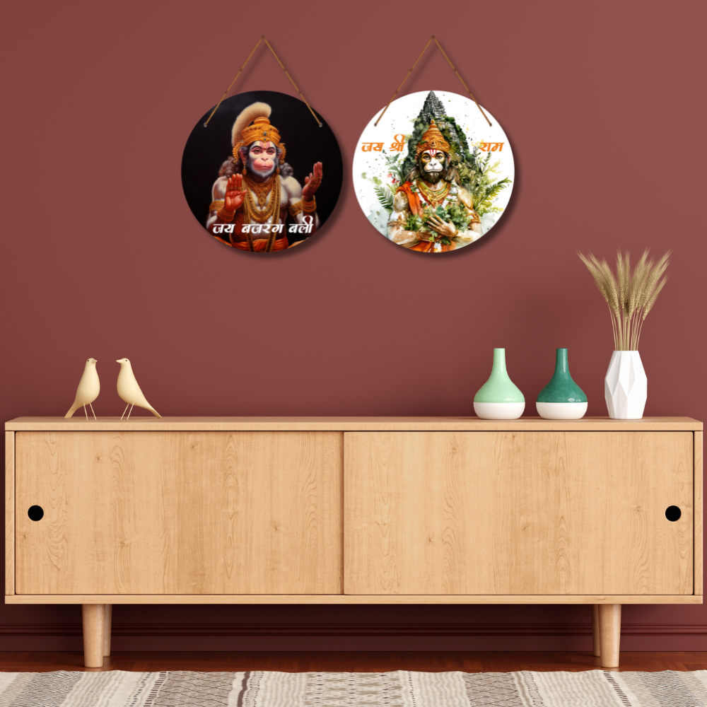 Celebrate the spirit of devotion and power with this Hanuman wall hanging set. Designed with vibrant artwork, one depicts “Jai Bajrang Bali” while the other honors “Jai Shri Ram.” A perfect blend of strength, faith, and blessings, this décor piece inspires courage, positivity, and spiritual energy in your home or sacred space.