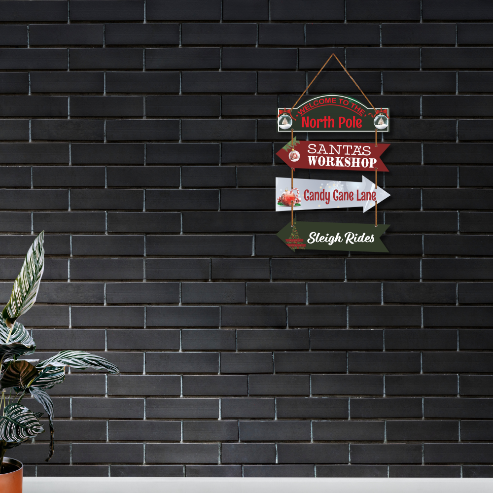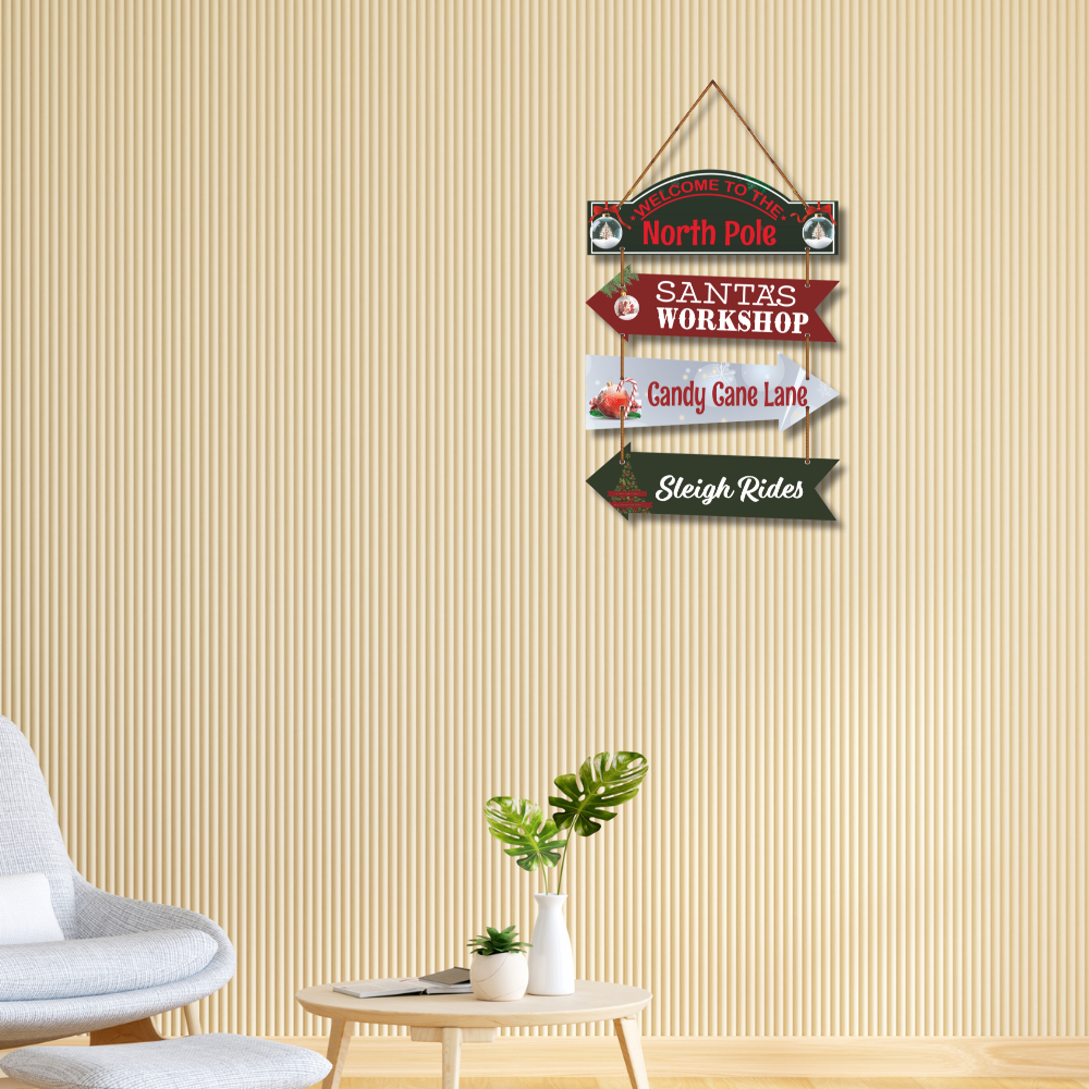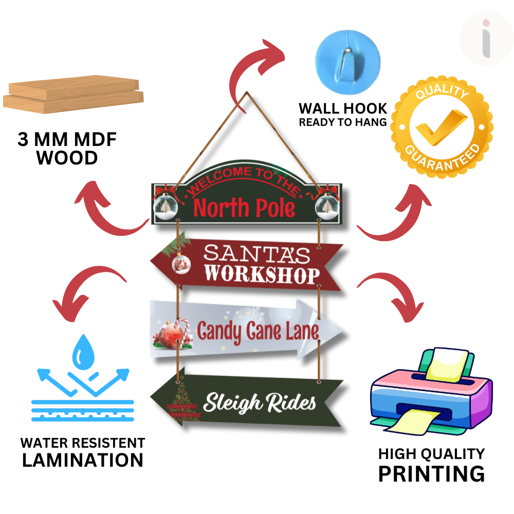 Bring festive cheer to your home with this delightful North Pole-themed wall hanging featuring signs to Santa’s Workshop, Candy Cane Lane, and Sleigh Rides. Designed with vibrant Christmas colors and playful details, it creates a magical holiday atmosphere. Perfect for living rooms, doorways, or parties, this décor piece spreads joy and excitement for the season.