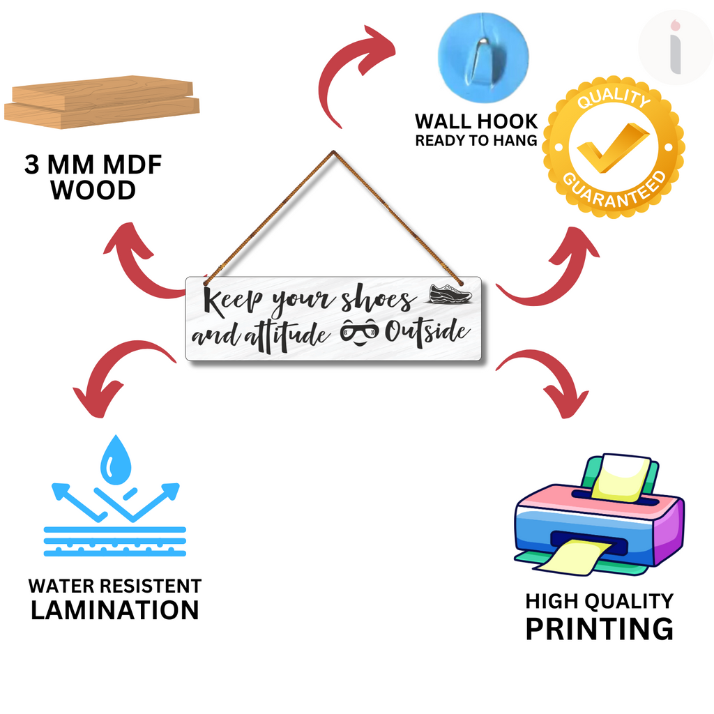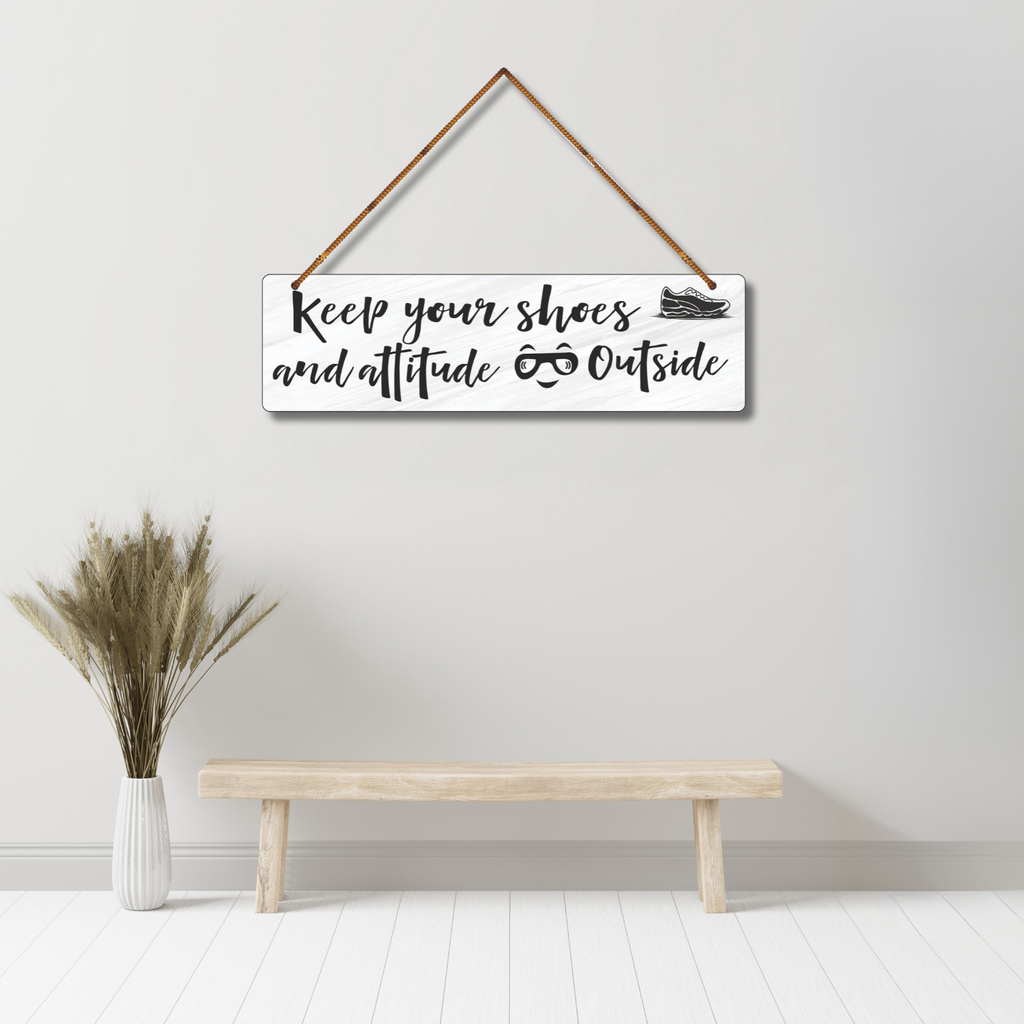 Add humor and rules in one go with this witty wall hanging! “Keep your shoes and attitude outside” sets the tone at your doorstep with style. Perfect for homes that like a clean floor and a chill vibe. A playful reminder for guests to step in with respect—and clean socks! 😎👟