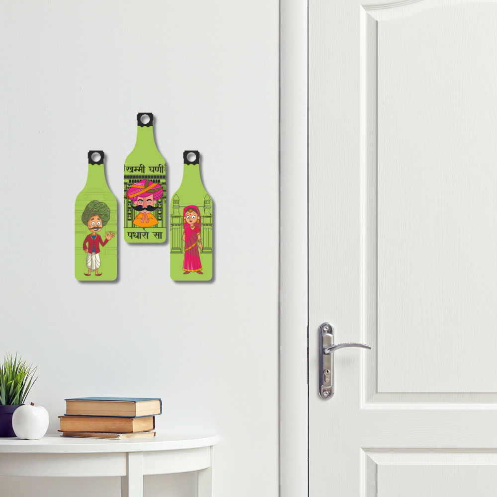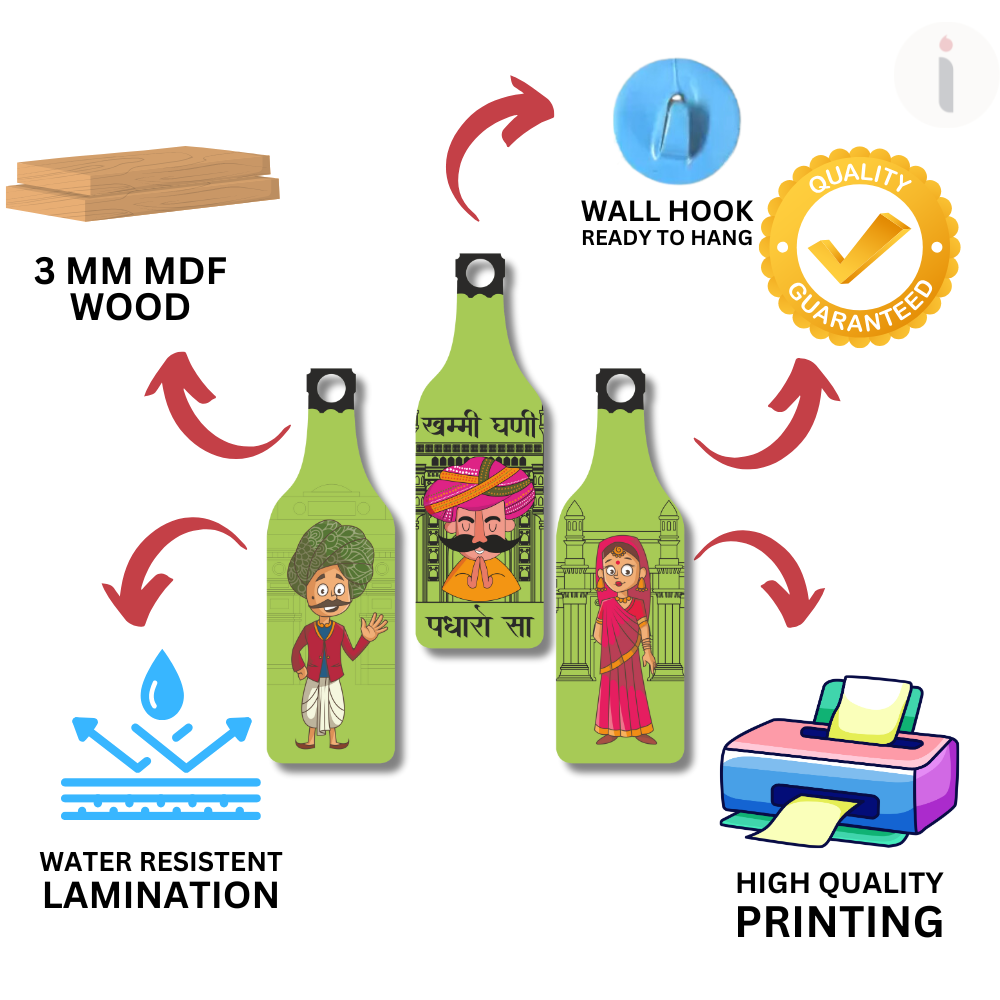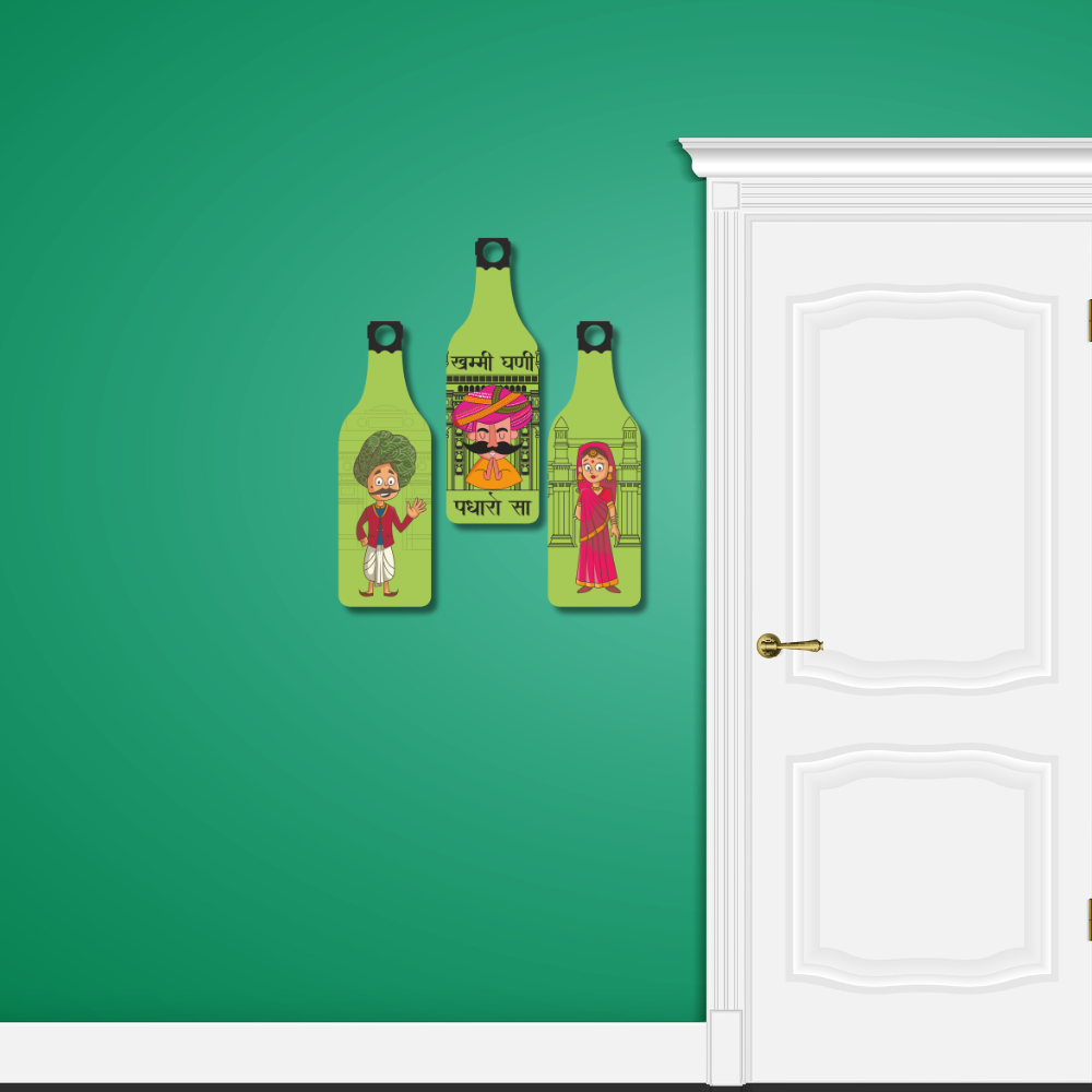 Celebrate the warmth and tradition of Rajasthan with this vibrant Padharo Sa wall hanging. Featuring cheerful Rajasthani characters in traditional attire, it radiates hospitality and cultural charm. The playful artwork and bright colors make it a perfect piece to welcome guests into your home, office, or café, bringing a touch of Rajasthan’s royal heritage and heartfelt greetings.