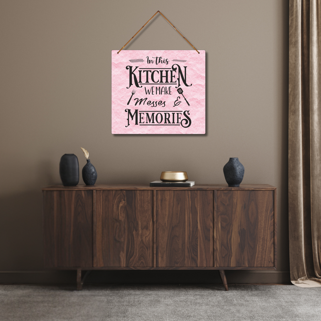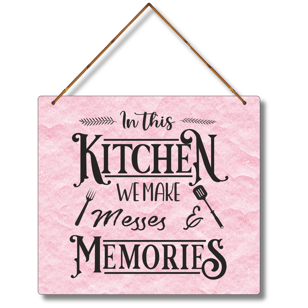 This delightful wall hanging celebrates the heart of the home—where meals are made with love, laughter echoes, and memories are created in every stir and spill. A charming addition to any kitchen, it adds warmth and personality while reminding us that every mess has a memory worth cherishing.