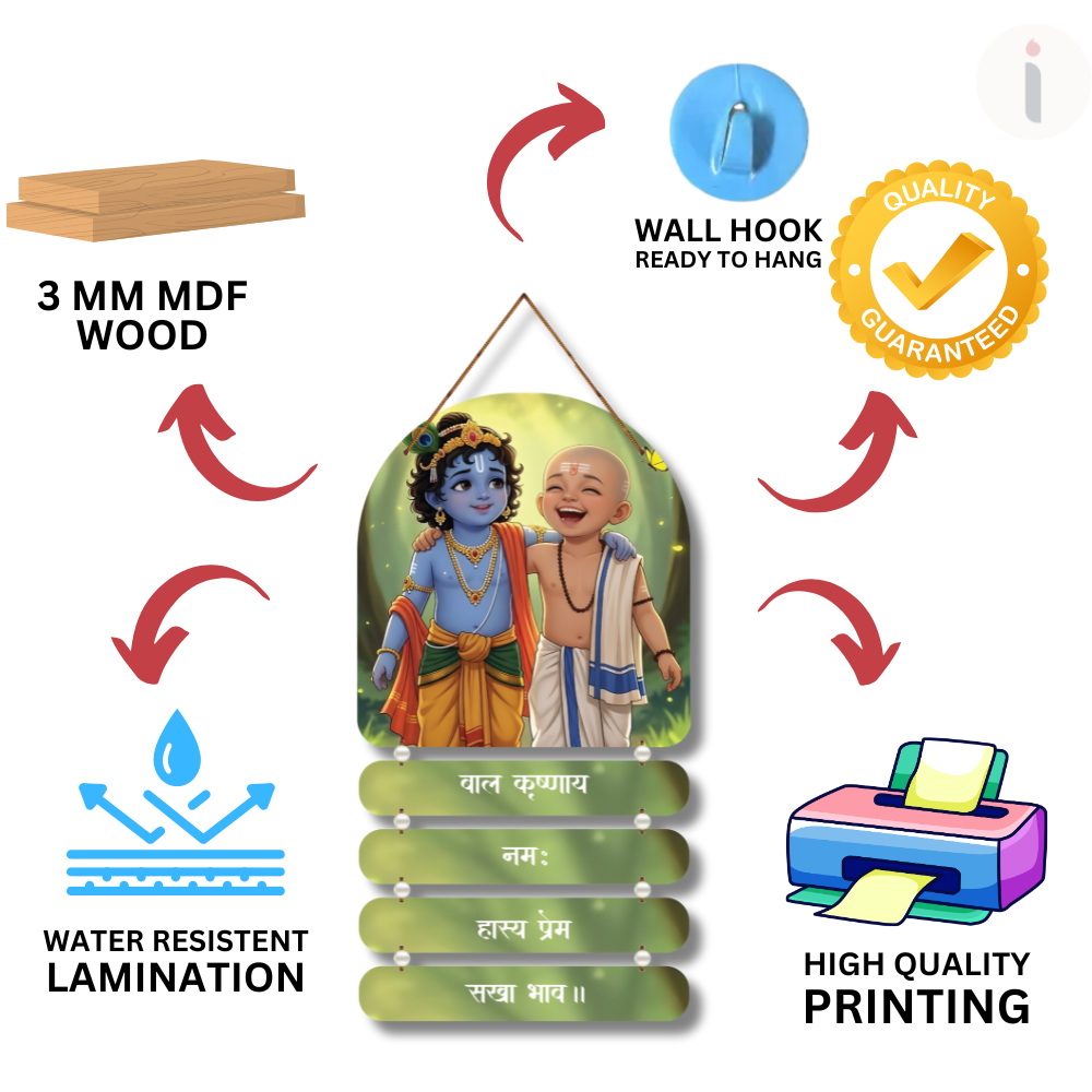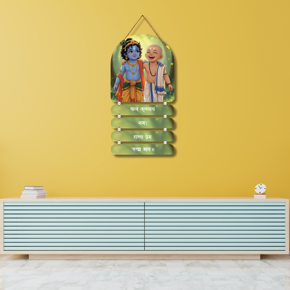 Celebrate divine friendship with this adorable Bal Krishna & Sudama Wooden Wall Hanging 🧿🤝. Featuring cute child forms of Krishna and his dear friend, it radiates love, laughter, and pure sakha-bhav 💛. Perfect for kids’ rooms, living rooms, gifting, temples, and festive décor 🎁🪔. A heartwarming symbol of joy, devotion, and lifelong friendship 🌿✨.