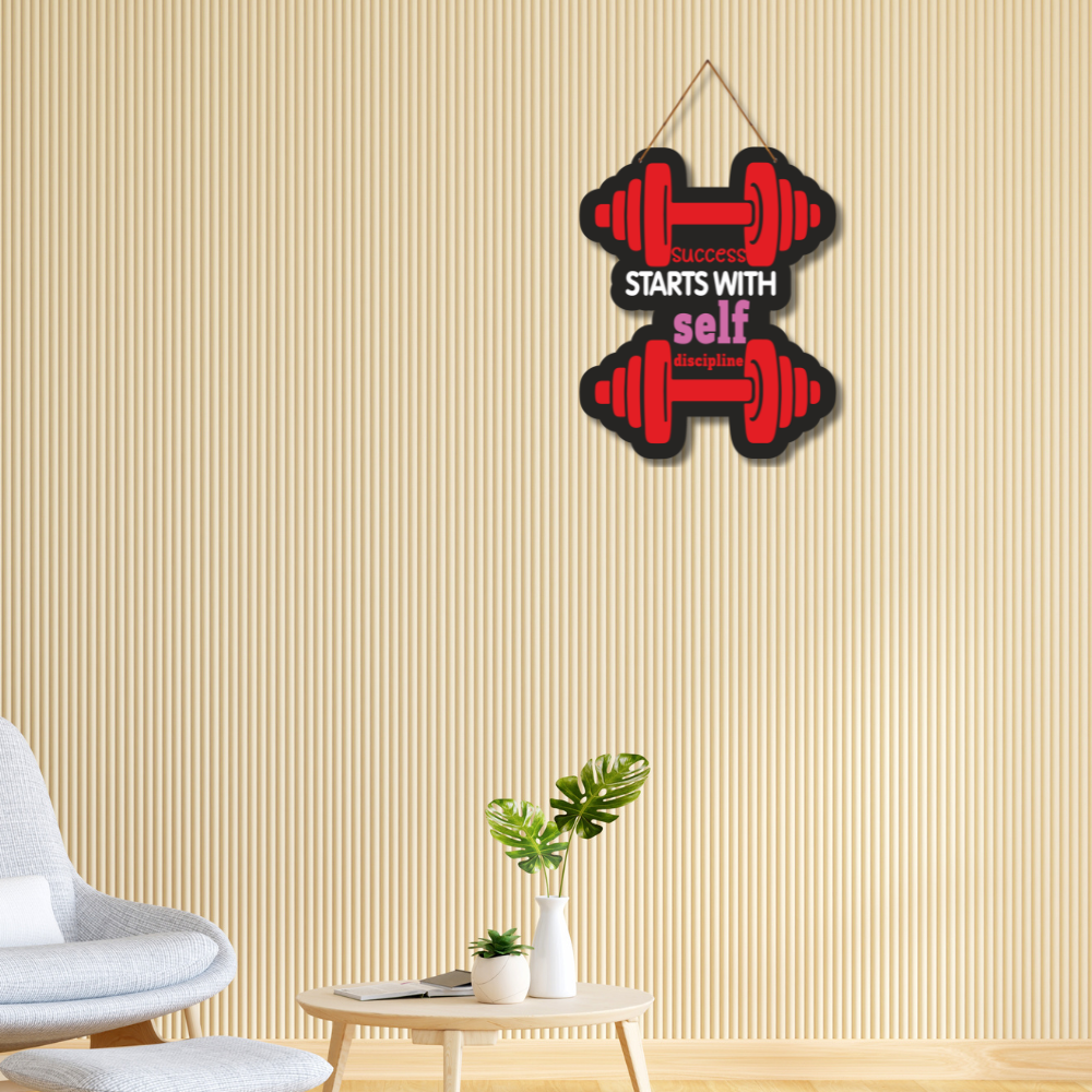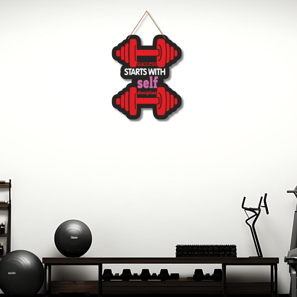 This bold wall hanging is designed with striking red dumbbells and a motivational quote — “Success starts with self-discipline.” Perfect for gyms, workout areas, or study spaces, it inspires consistency, focus, and determination. A powerful reminder that true achievement comes from within, this piece adds energy and motivation to any environment where hard work meets passion.