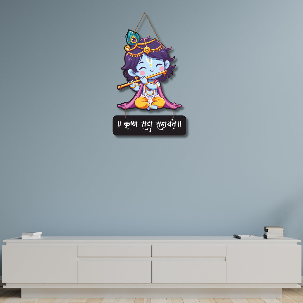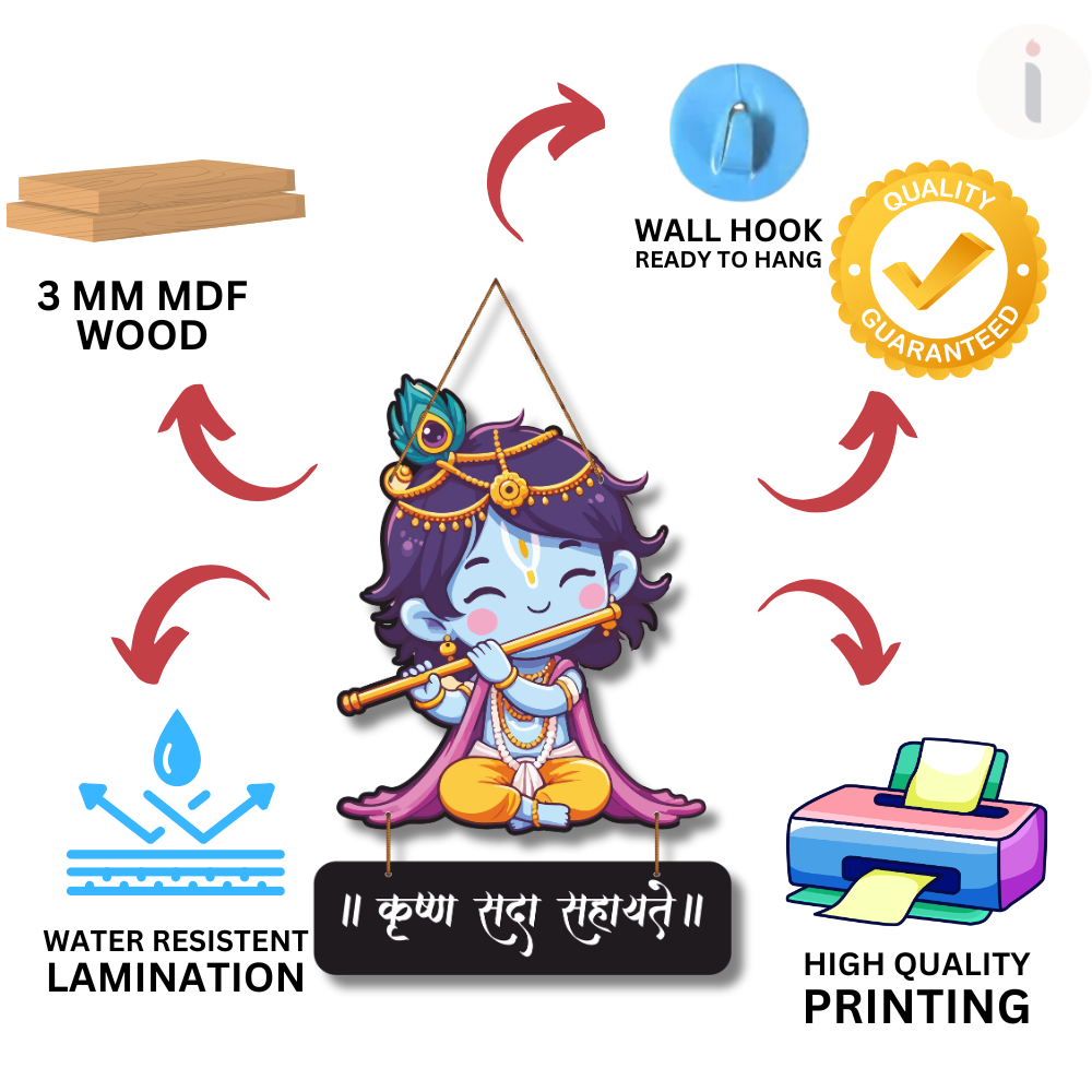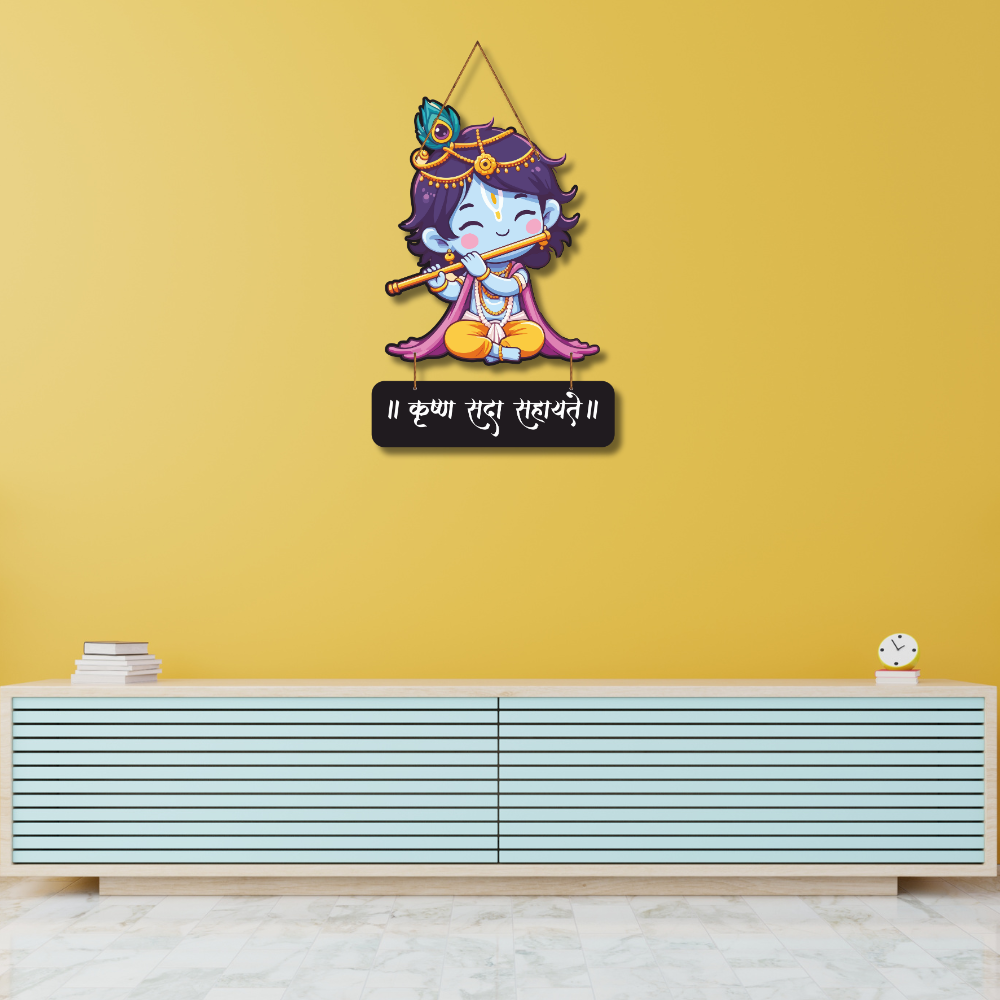 Add sweetness and divine positivity to your space with this Krushna Sada Sahayate Wooden Wall Hanging 🧿🦚. Featuring an adorable Bal Krishna design playing the flute 🎶, it spreads joy, love, and blessings in every corner of your home 🏡✨. Perfect for kids’ rooms, pooja spaces, entrances, and gifting on festivals 🎁🌸 — a symbol of Krishna’s protection and grace.