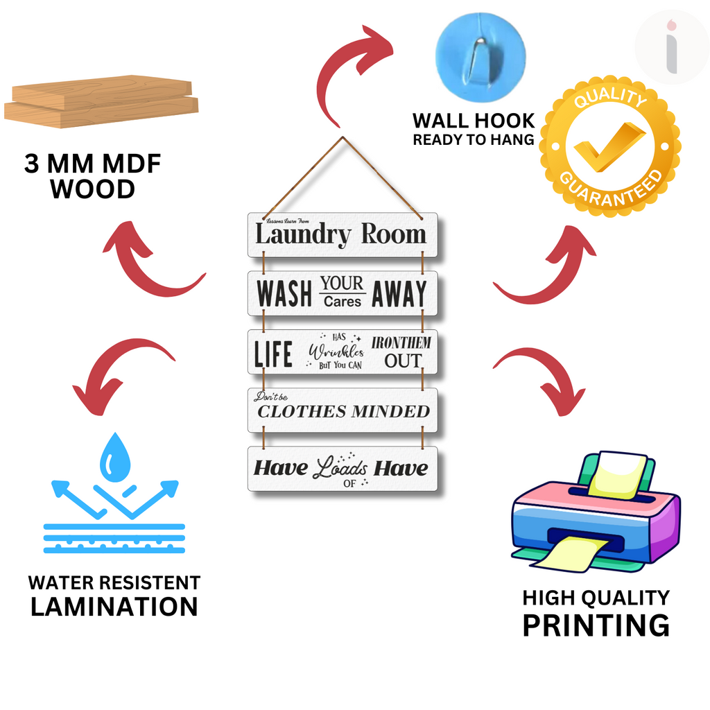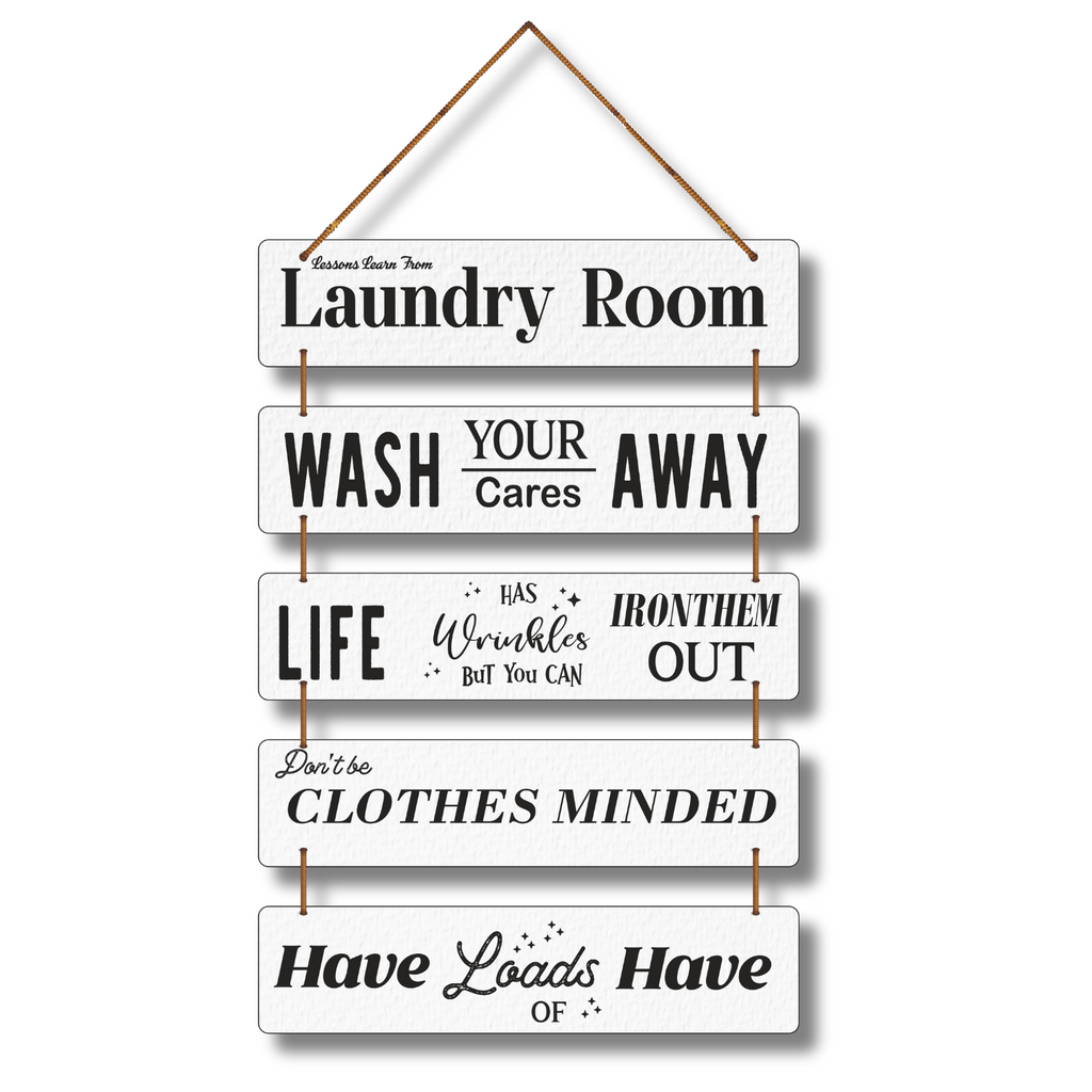 Brighten up your laundry space with this witty wall hanging full of playful life lessons! From “Wash your cares away” to “Don’t be clothes minded,” each line brings charm, humor, and a smile. Perfect for making laundry day lighter and reminding us all to iron out the wrinkles—both in clothes and life!