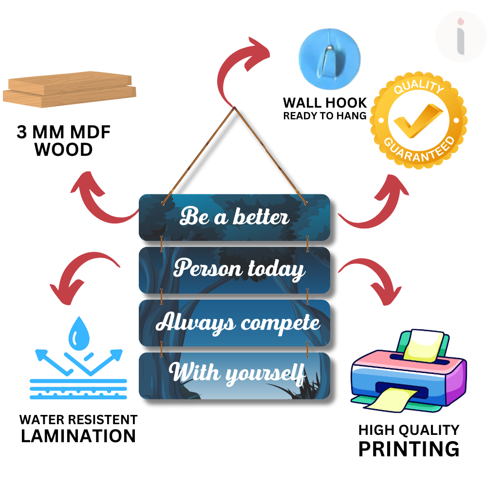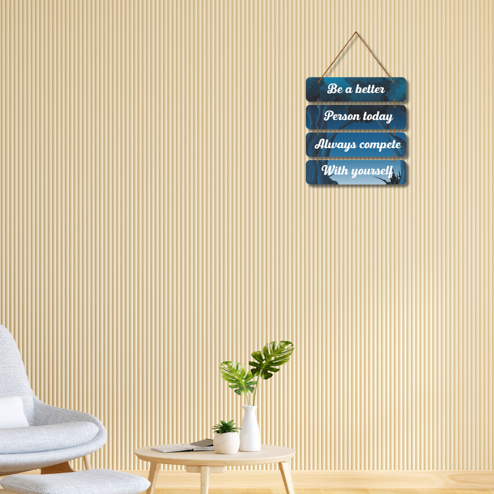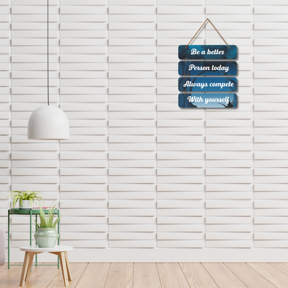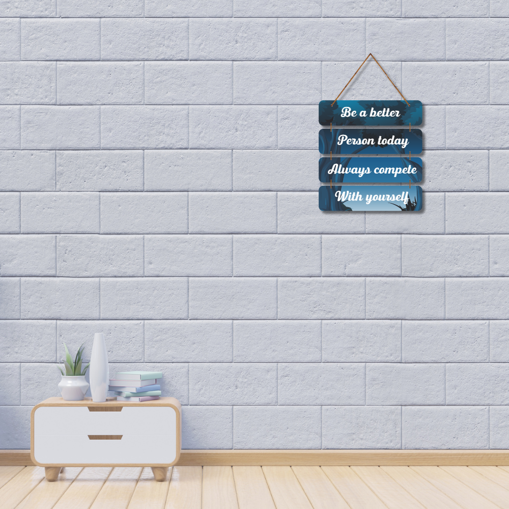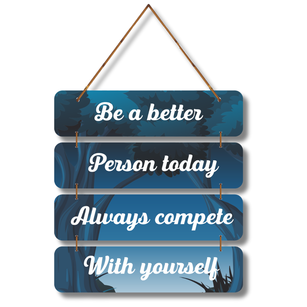 Inspire growth and self-improvement with this motivational wall hanging that reads Be a better person today, always compete with yourself. Designed in calming blue tones, it adds positivity to any space. Ideal for homes, offices, or study areas, this wall art serves as a daily reminder to focus on progress, self-discipline, and becoming the best version of yourself.