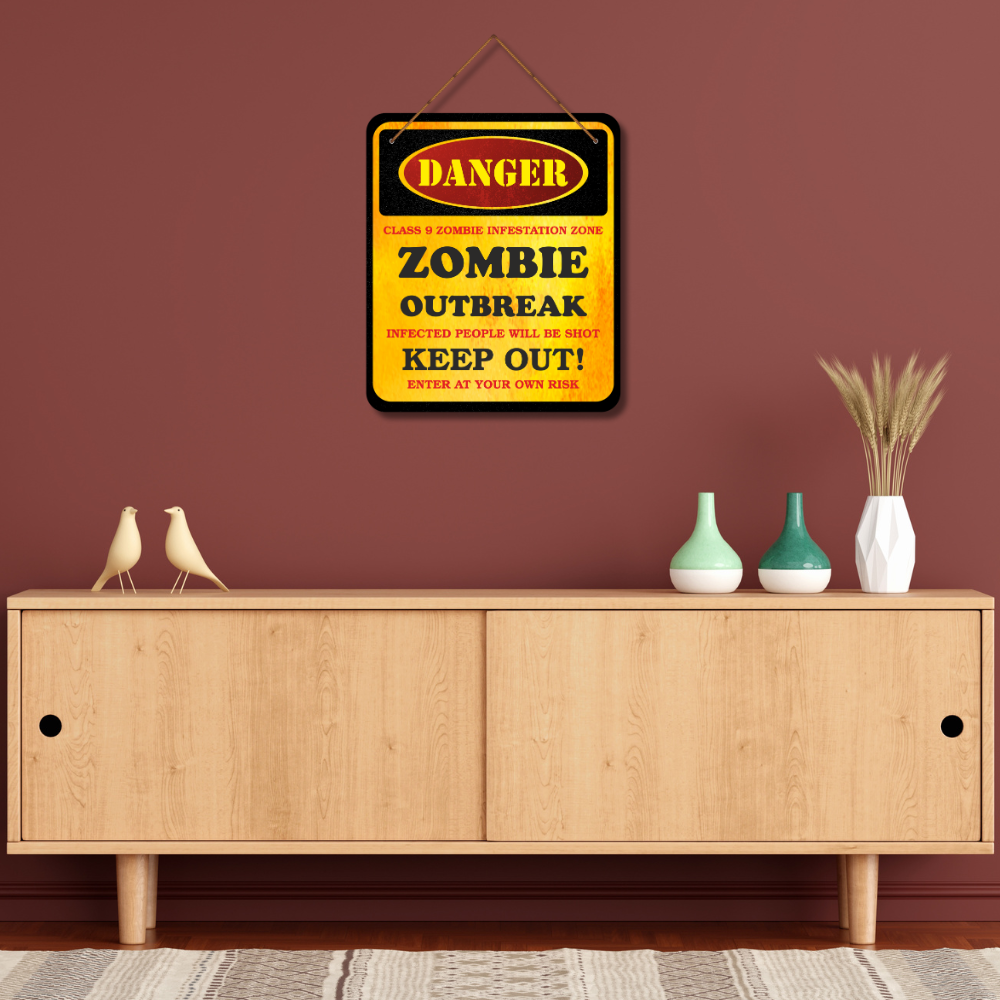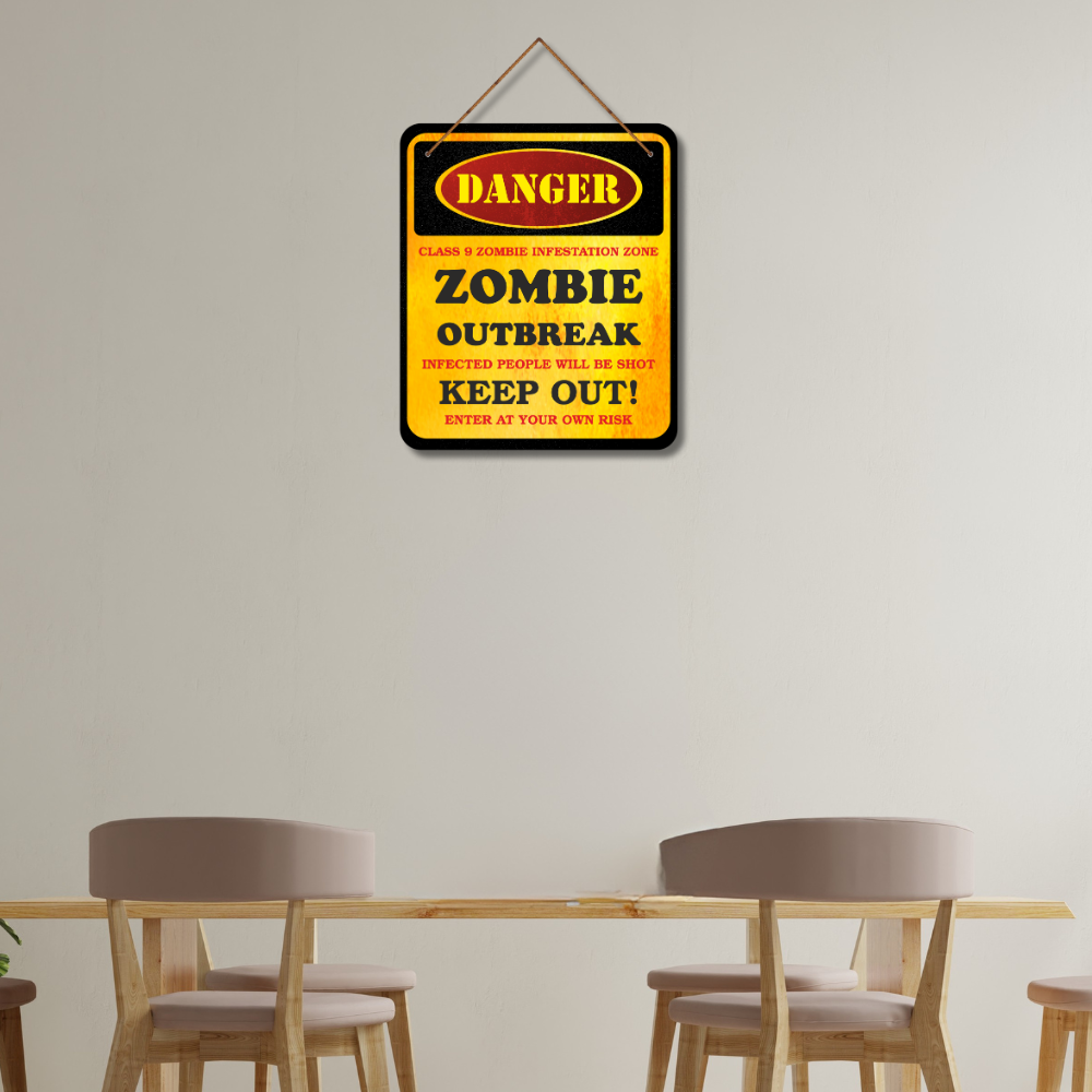 Add a spooky and fun vibe to your space with this quirky wooden wall hanging designed as a “Zombie Outbreak Danger” warning sign. With bold yellow and black colors, it’s perfect for Halloween décor, game rooms, or prank setups. A great conversation starter, this wall piece brings humor, thrill, and a playful scare to any environment.