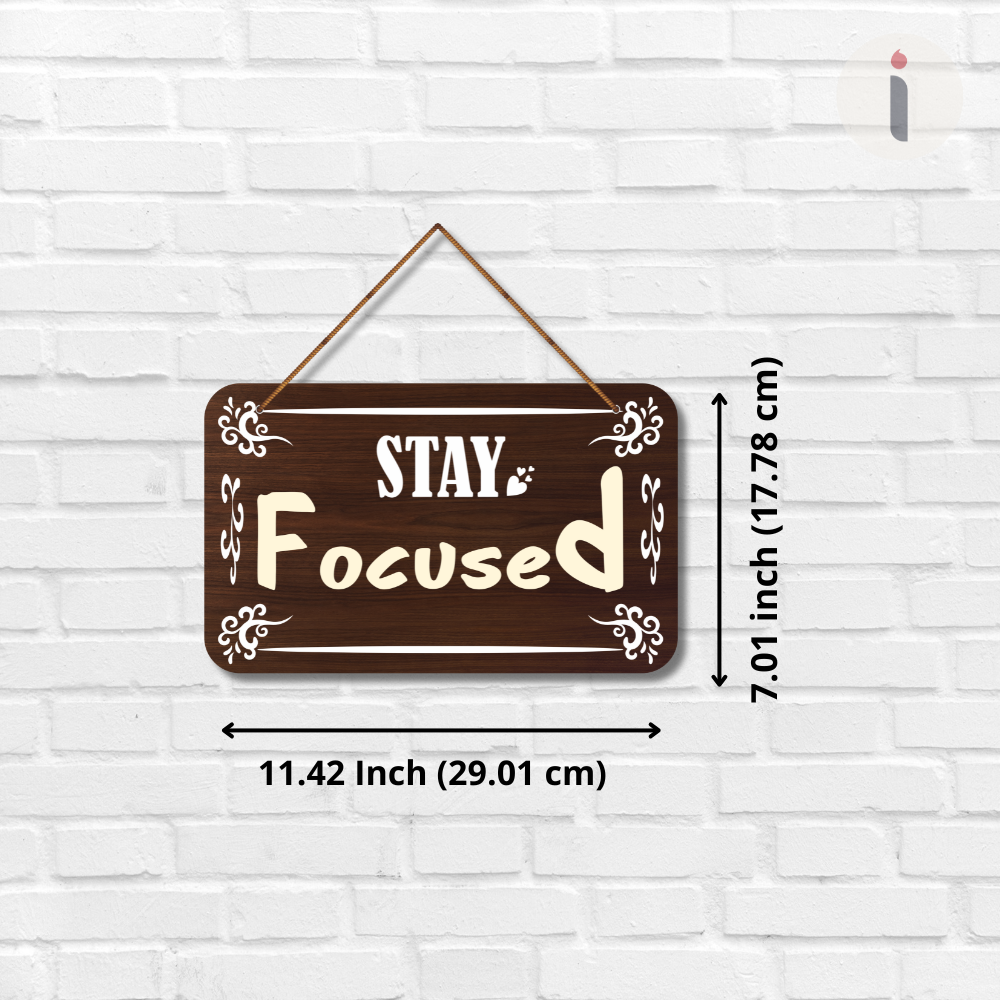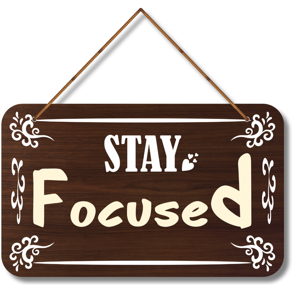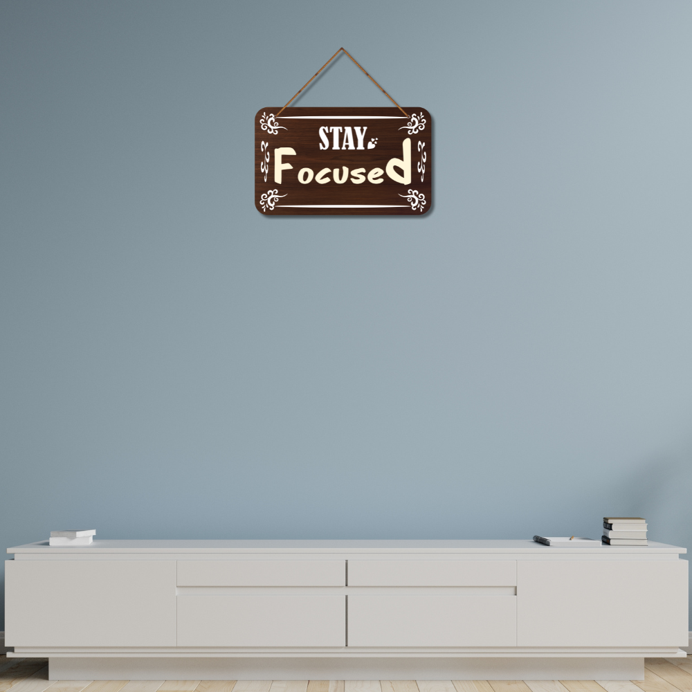 This motivational wall hanging with the bold message “Stay Focused” is perfect for workspaces, study rooms, or offices. Crafted on a wooden-style background with elegant white patterns, it serves as a daily reminder to concentrate on your goals and ambitions. Ideal for boosting productivity and maintaining inspiration, it brings positivity and determination to any environment.