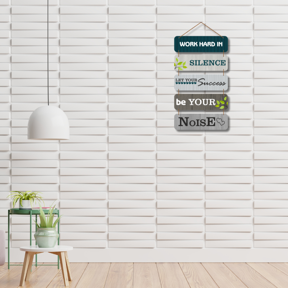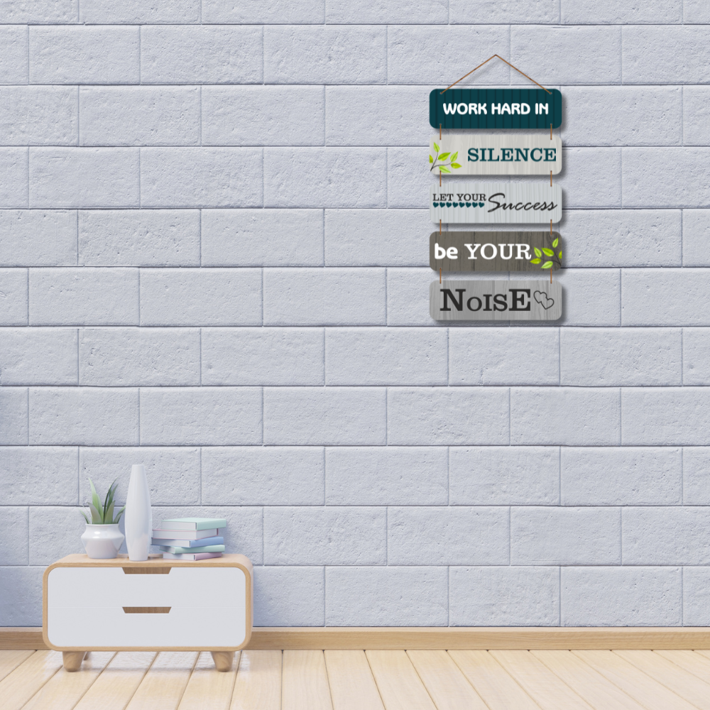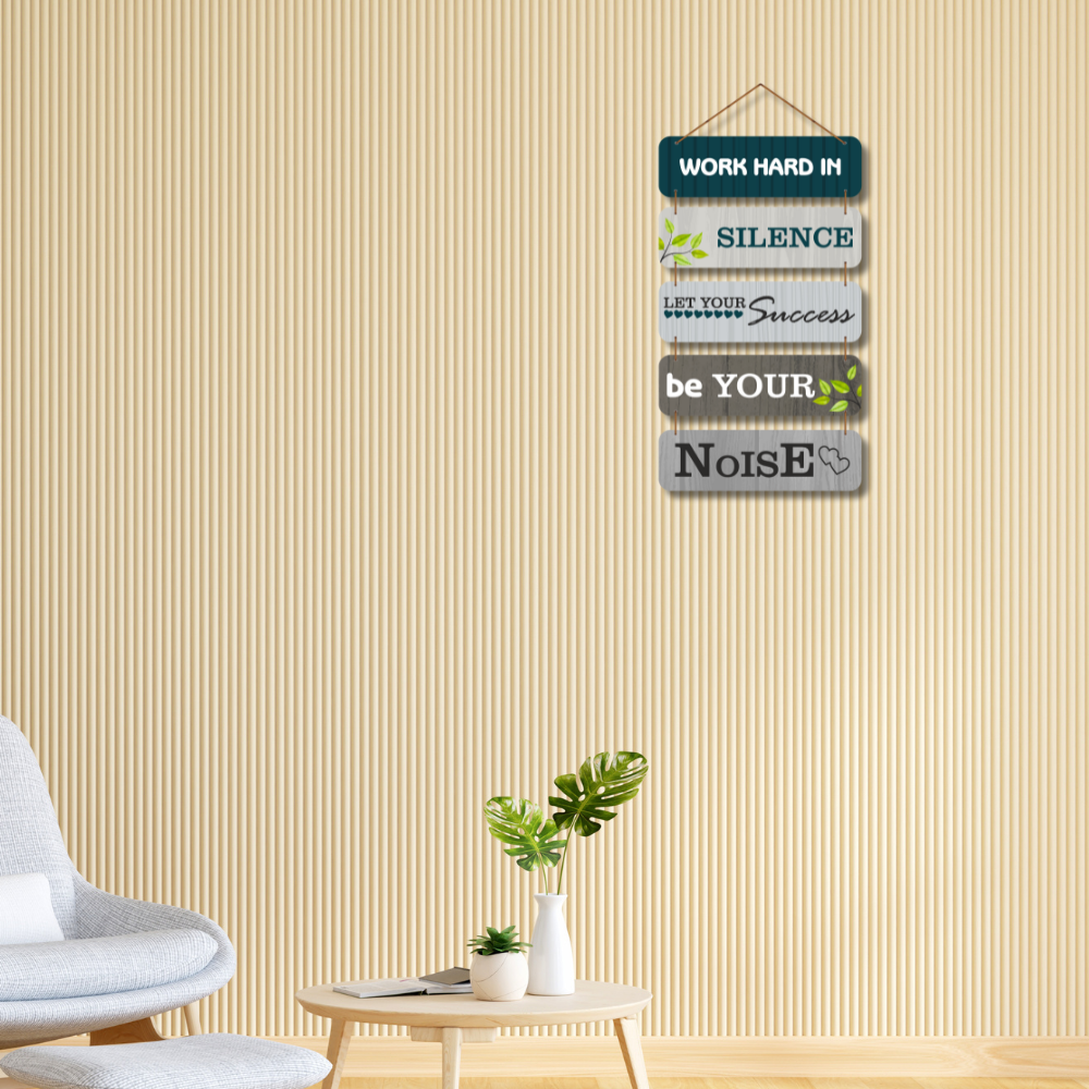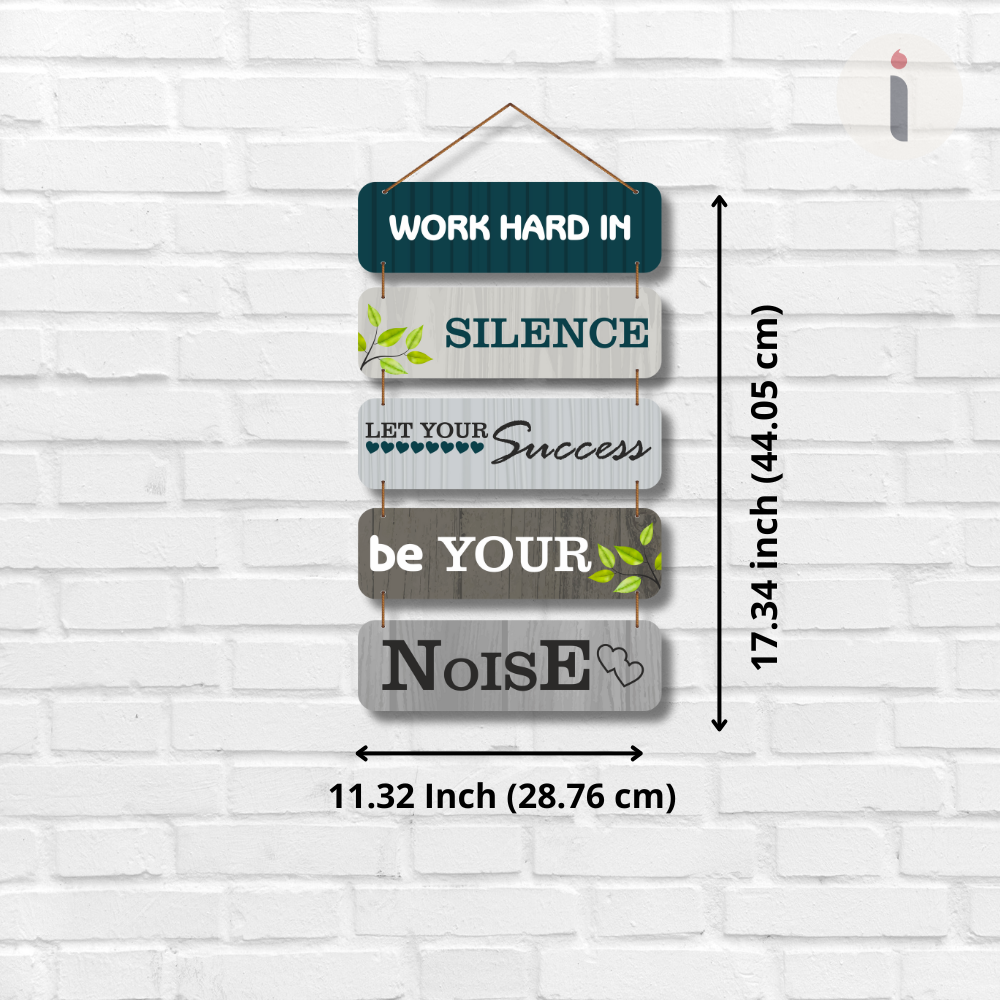 This inspiring wooden wall hanging carries the powerful message “Work hard in silence, let your success be your noise.” Designed with a modern rustic look and nature-inspired accents, it motivates you daily to stay focused and consistent. Perfect for homes, offices, or study areas, it’s a beautiful reminder to let actions speak louder than words..