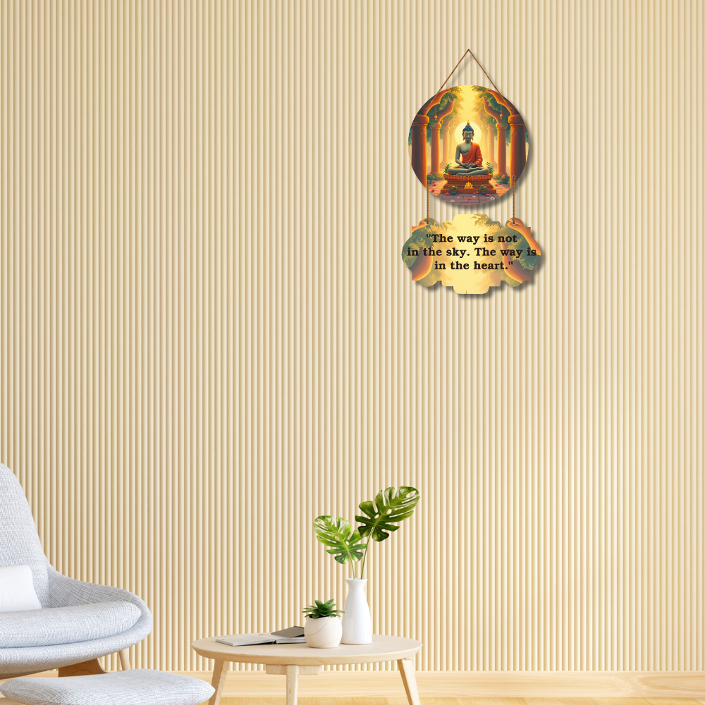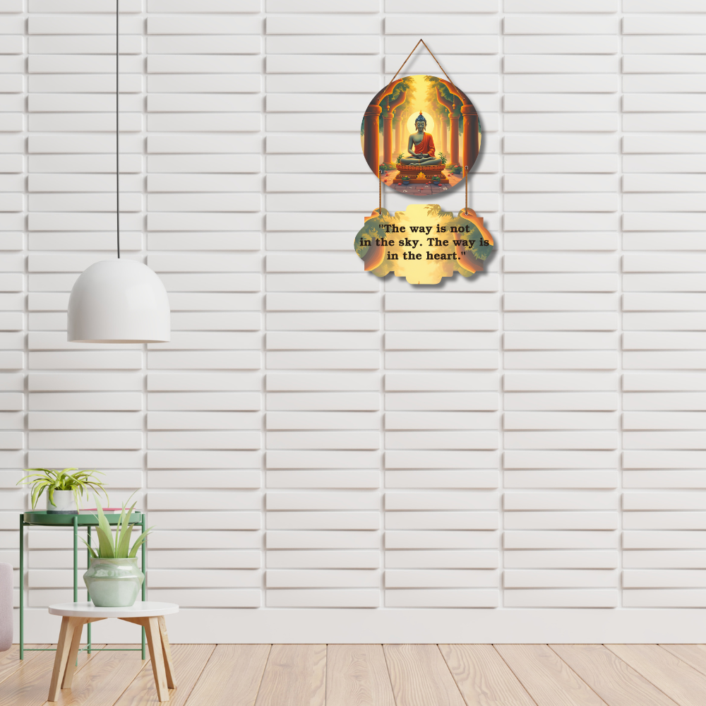 Bring peace and mindfulness into your home with this serene Buddha wall hanging. Featuring a meditative Buddha and the inspiring quote, “The way is not in the sky. The way is in the heart,” it reminds us to seek inner truth and compassion. Perfect for meditation spaces, living rooms, or as a thoughtful spiritual gift.
