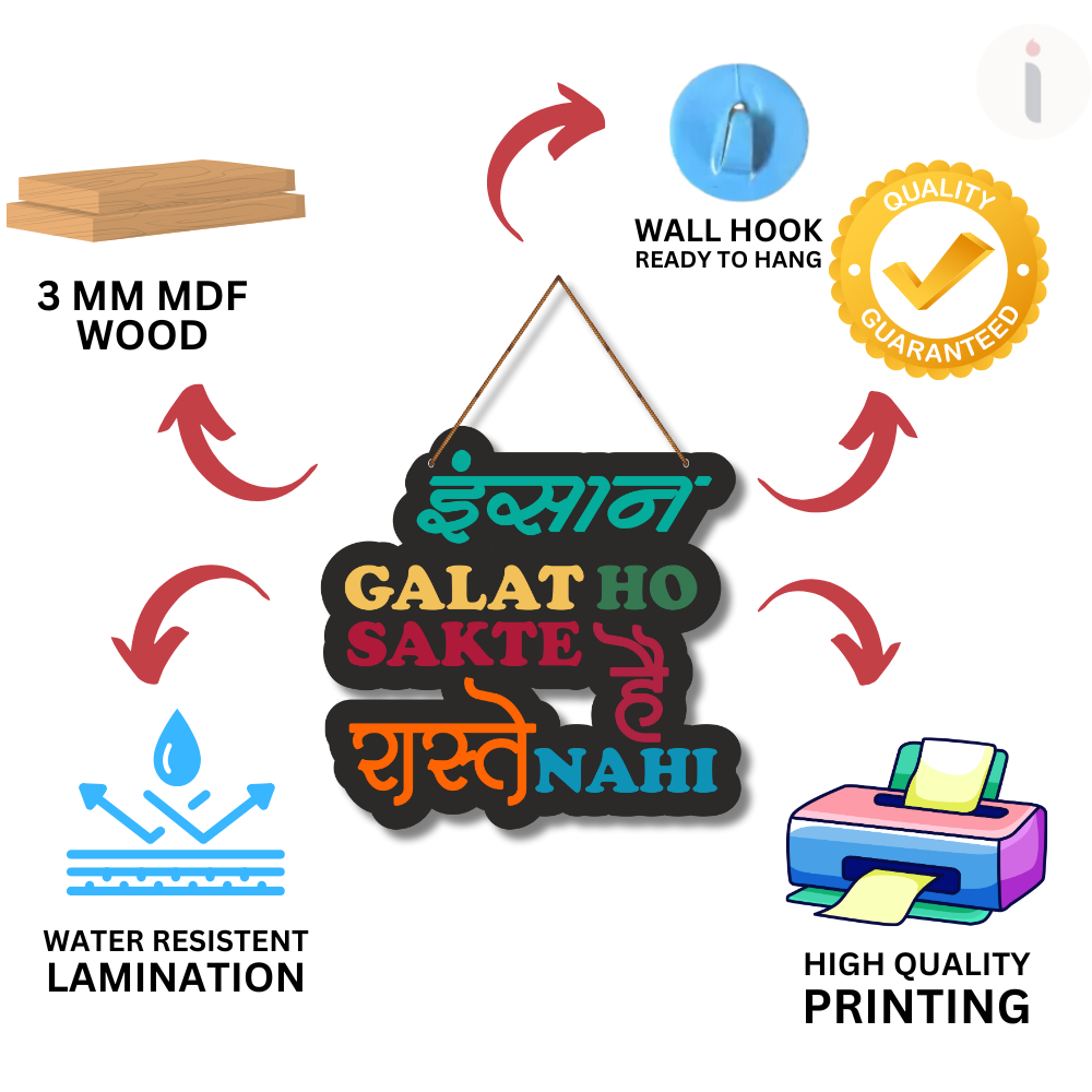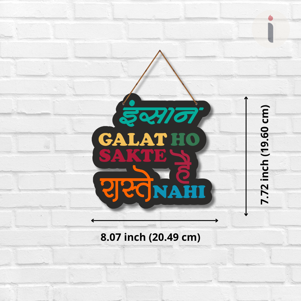 Add a touch of wisdom and charm to your space with this quirky wall hanging that reads "Insaan Galat Ho Sakte Hain, Raste Nahi" (Humans can be wrong, not the paths). Crafted in vibrant colors on a black background, it delivers a bold message with style. Perfect for homes, offices, or gifting!