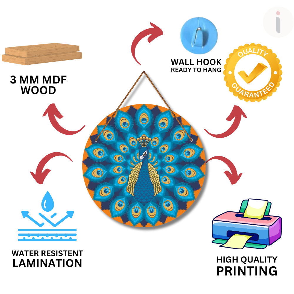 Add a royal charm to your home décor with this stunning peacock wall hanging, beautifully designed with vibrant feathers and intricate details. The peacock, a symbol of grace, beauty, and prosperity, makes this piece perfect for living rooms, entrances, or gifting. Its bold colors and artistic finish instantly elevate any wall, bringing elegance and positivity to your space.