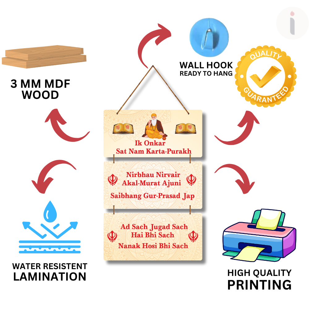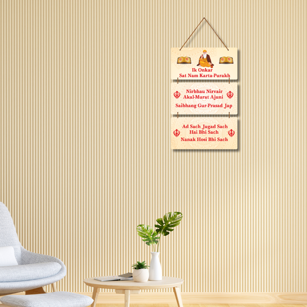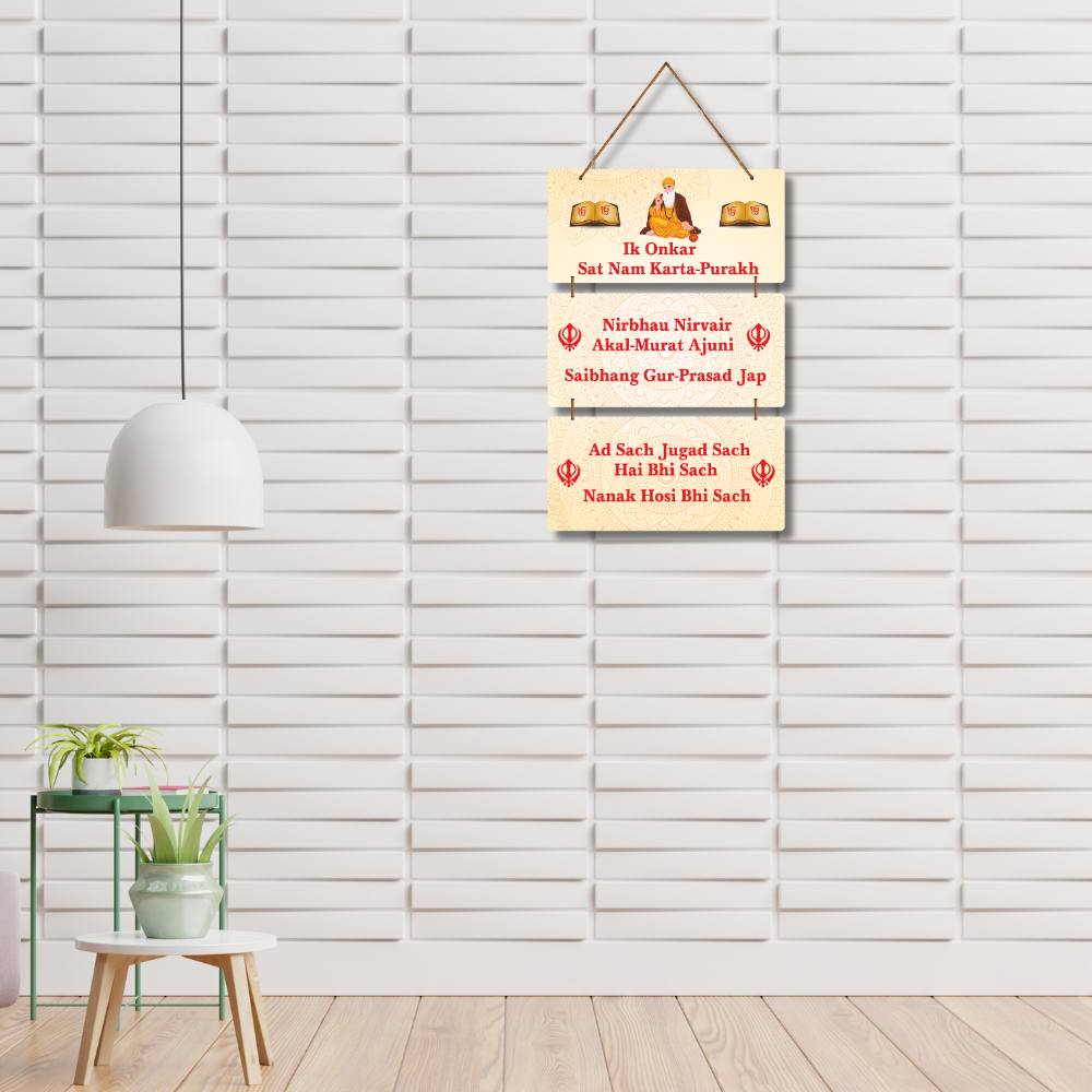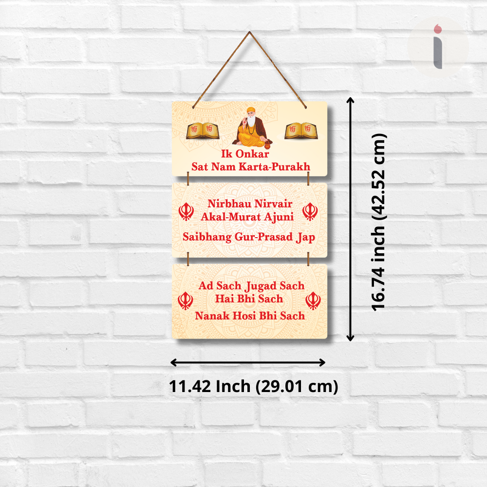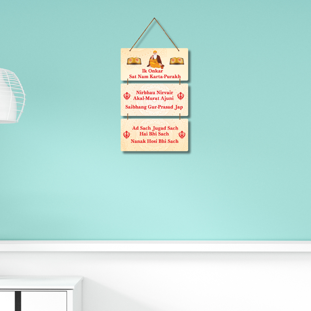 Embrace divine wisdom with this spiritual wall hanging featuring Guru Nanak Dev Ji and the sacred Mool Mantar. Written in bold red, it spreads the message of truth, fearlessness, and compassion. Perfect for prayer rooms, living spaces, or gifting, this décor piece radiates positivity, faith, and the eternal teachings of Sikhism, reminding us of oneness and divine presence.