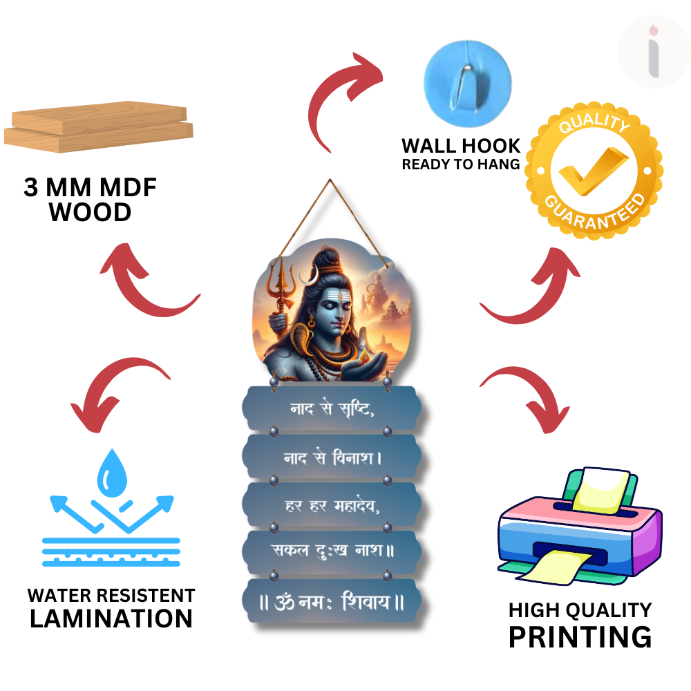 Invoke peace, divine strength, and spiritual purity in your home with this Naad Se Srishti Wooden Wall Hanging 🔱🕉️. Featuring a mesmerizing image of Lord Shiva and devotional Sanskrit lines, it radiates calmness, protection, and positivity ✨🙏. Ideal for meditation corners, puja rooms, living areas, and gifting 🎁🏡 — a perfect décor piece to feel Mahadev’s blessings every day.