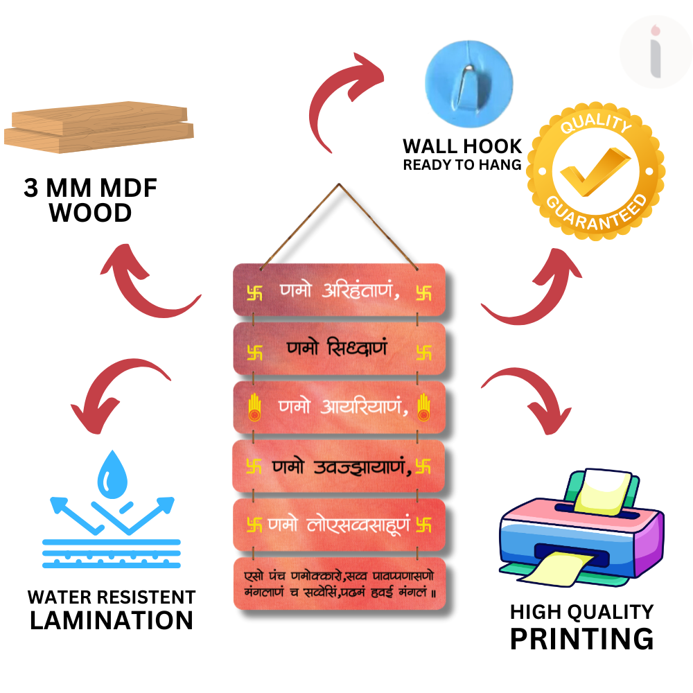 Bring home spiritual harmony with this Jain Panch Namokar Mantra Wooden Wall Hanging 🕉✨. Designed in elegant saffron tones, it features sacred symbols like 🕉 and the Jain Ahimsa hand, radiating peace and positivity. Perfect for pooja rooms, entrances, offices, or meditation spaces, inviting blessings, protection, and inner purity into your home 🧘♂️🏡