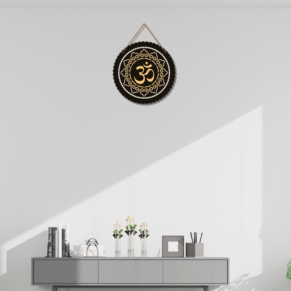 Elevate your space with this elegant Om wooden wall hanging 🕉️✨. Designed with a striking black base and golden mandala detailing, it radiates spiritual energy, peace, and balance. Perfect for pooja rooms, meditation areas, or living rooms, this décor piece brings calm vibes, positivity, and timeless Indian artistry into your home 🌿🙏💛.