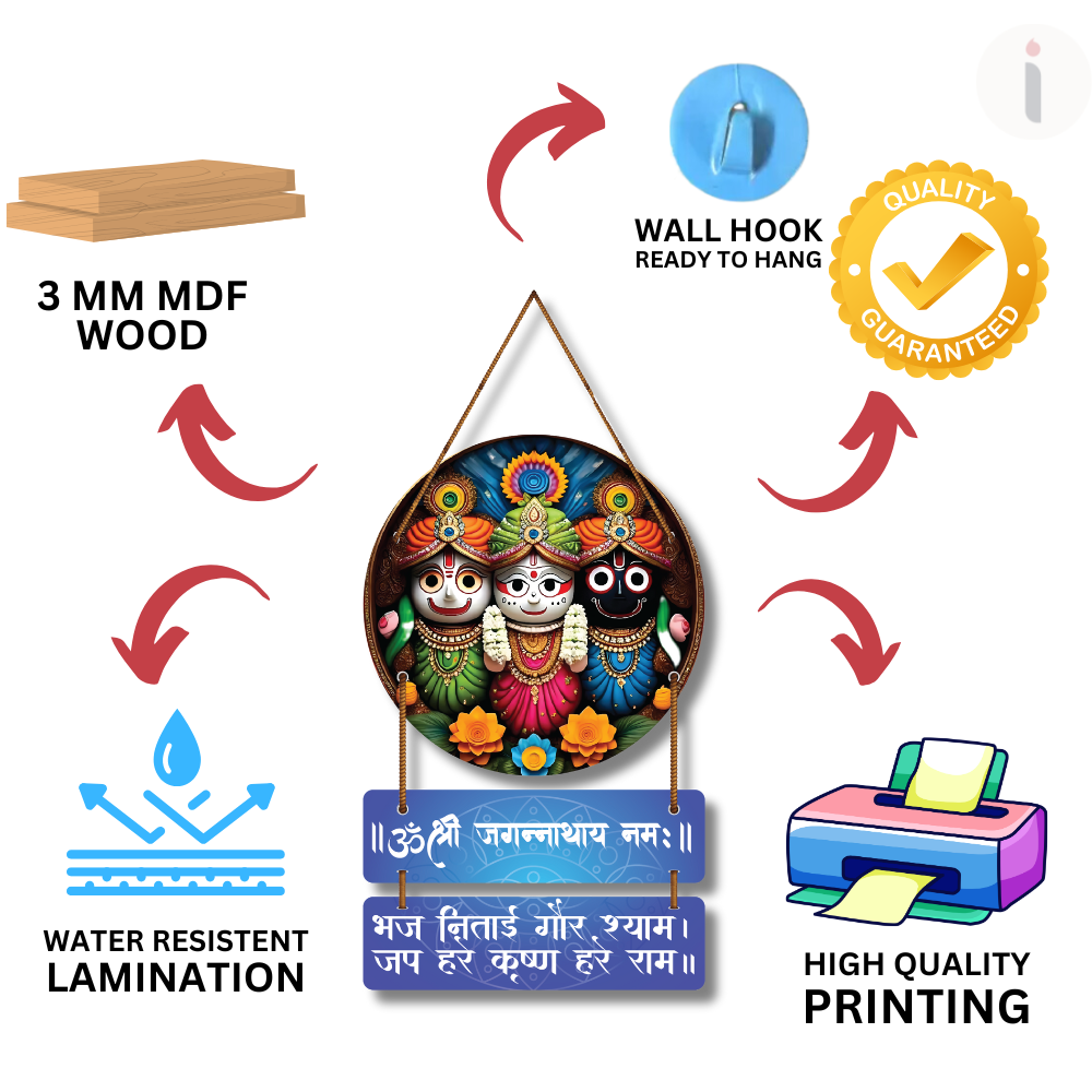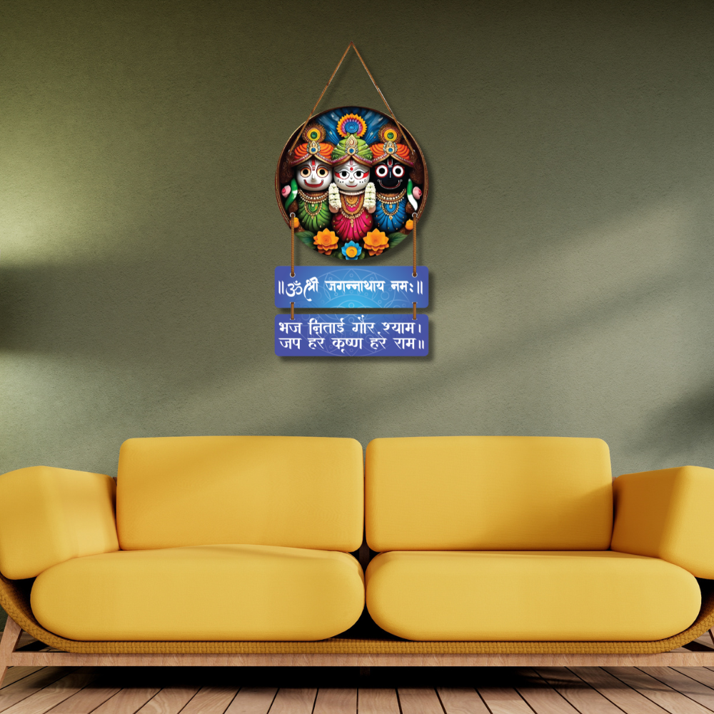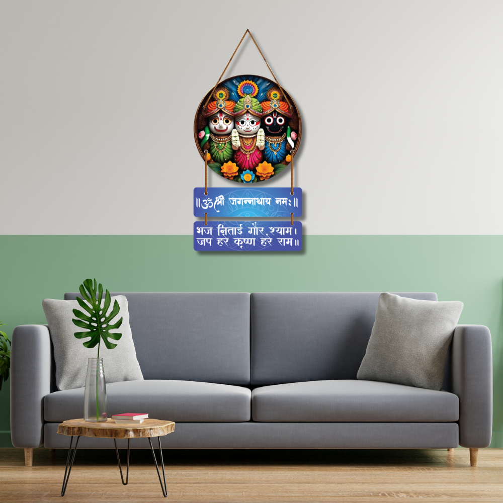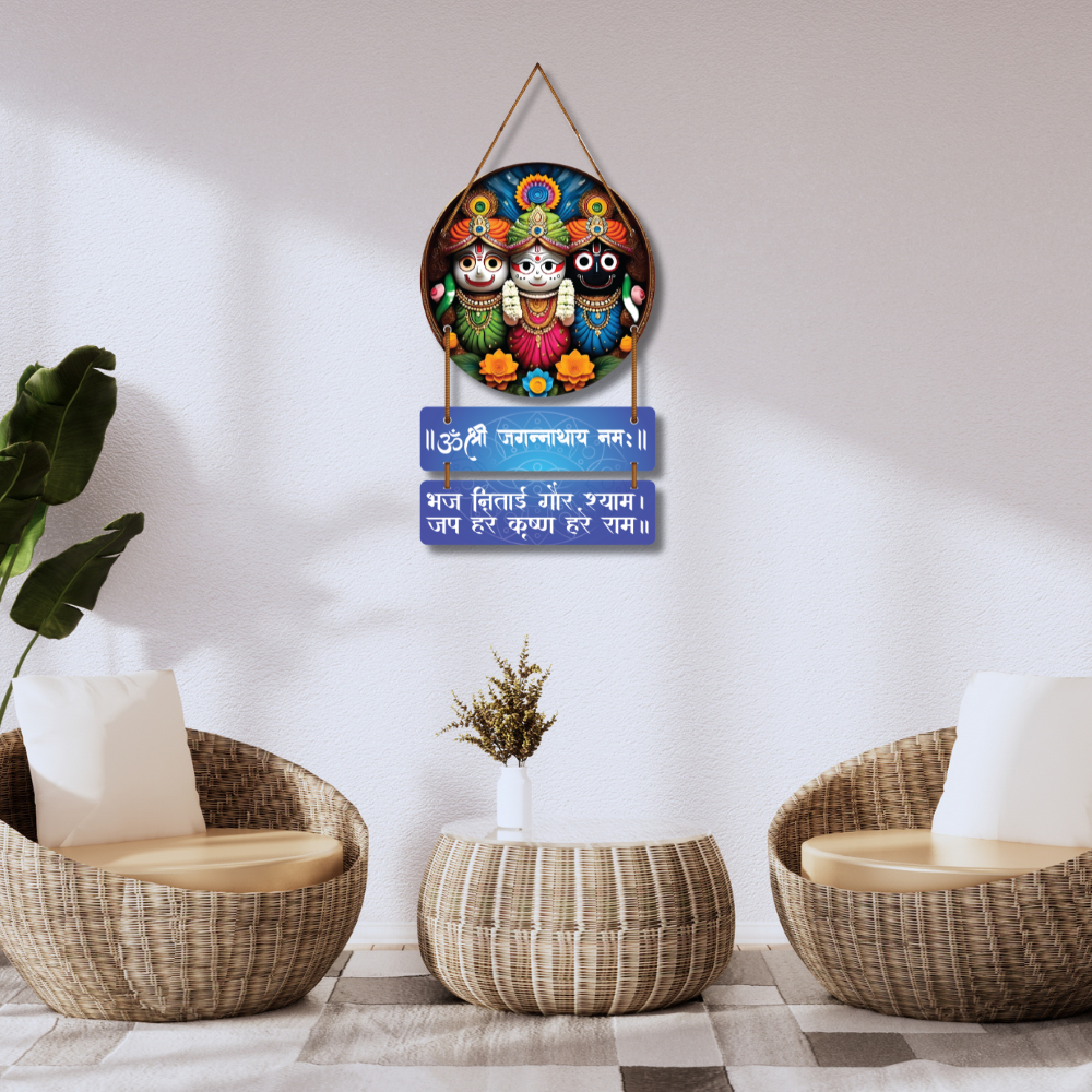 Bring divine grace to your home with this Jagannath Wooden Wall Hanging 🛕✨. Featuring Lord Jagannath, Balabhadra and Subhadra in vibrant artwork, it spreads devotion and peace. Adorned with sacred mantras, it inspires chanting and spiritual positivity 🙏🌿. Perfect for pooja rooms, entrances or gifting to loved ones for blessings, harmony and good fortune 🕉️🌸.