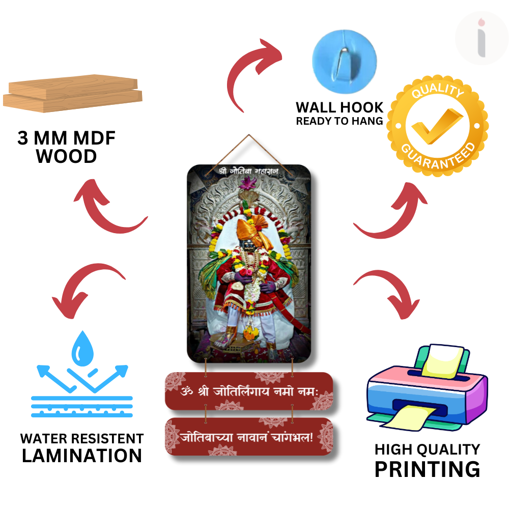 ✨ Invite divine protection and grace into your home with this devotional Shri Jyotiba wall hanging. 🌺 Featuring a richly adorned idol of Shri Jyotirling Mahadev, it carries sacred chants like “ॐ श्री ज्योतिलिंगाय नमो नमः” and a Marathi bhakti line praising Jyotiba. Perfect for pooja rooms, temple corners, doorways, or gifting spiritual blessings to loved ones. 🙏🕉️