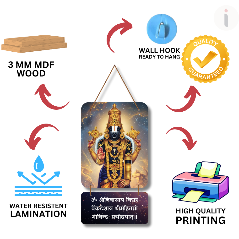 ✨ Elevate your space with divine grace through this majestic Lord Venkateswara wall hanging. 🛕🌟 Featuring intricate golden details and the sacred Venkatesa Gayatri Mantra, it radiates peace, protection, and spiritual prosperity. Perfect for homes, pooja rooms, offices, or as a meaningful devotional gift that inspires faith and positive energy every day. 🙏💛