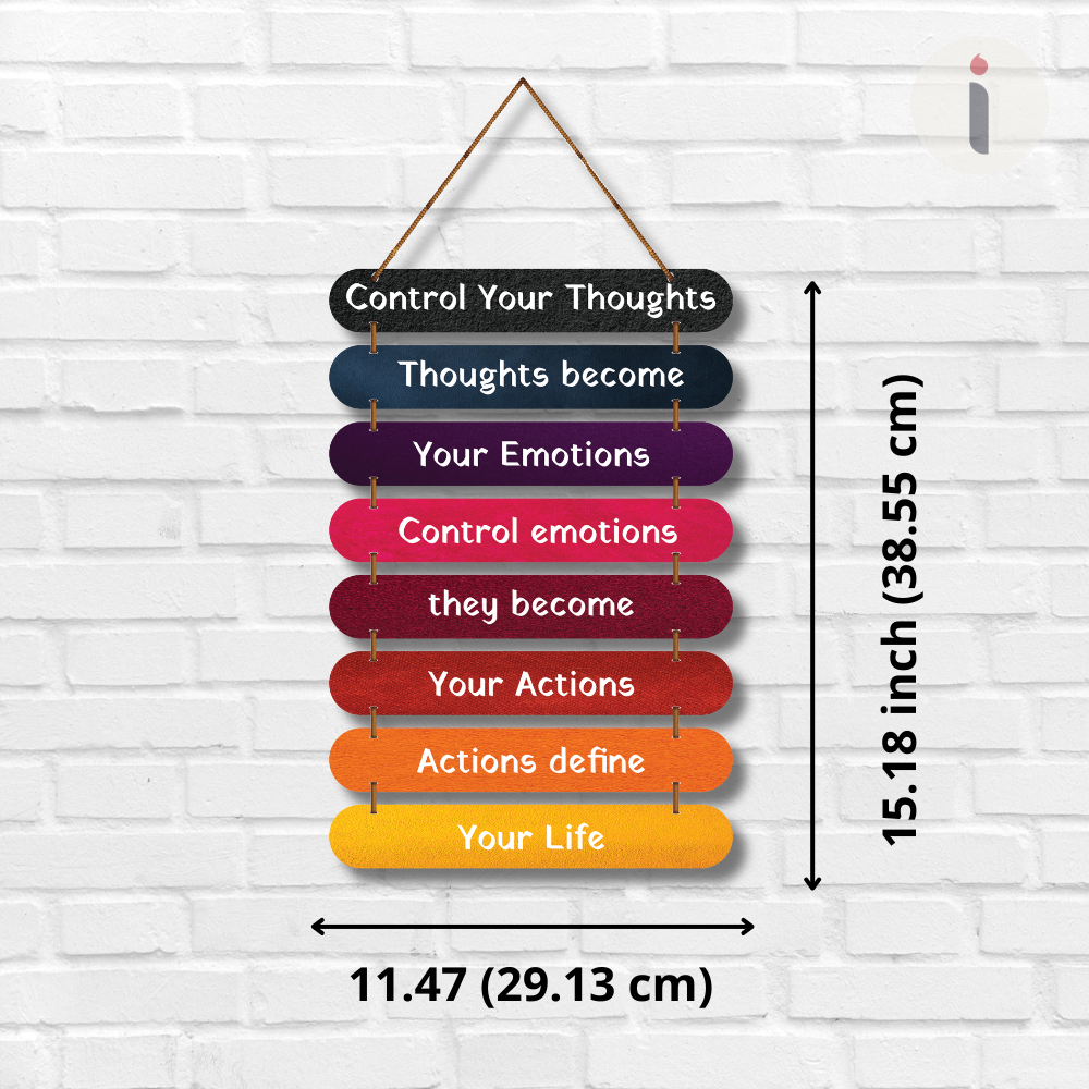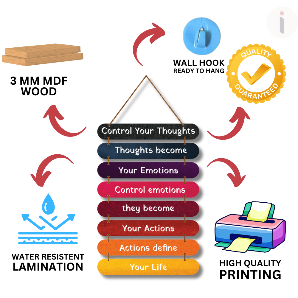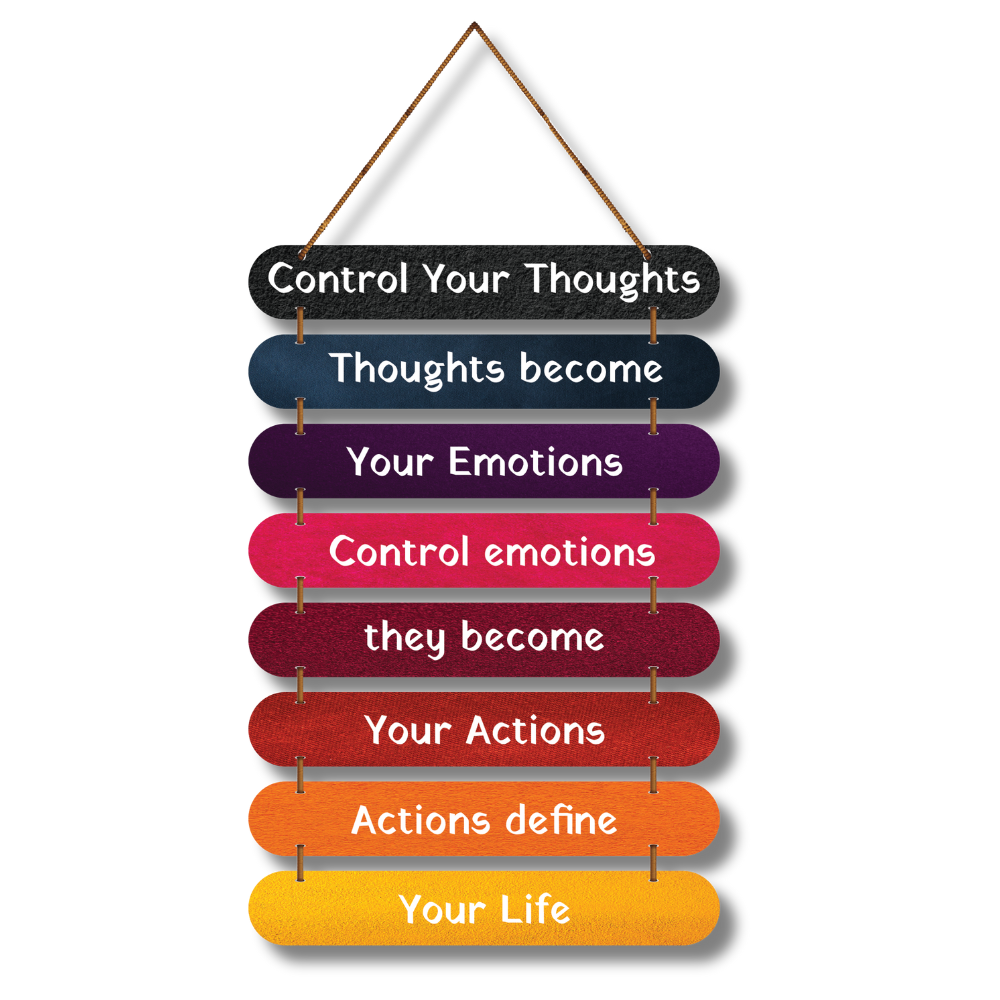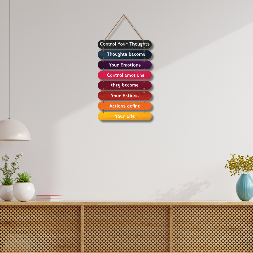 ✨ Add a burst of motivation to any space with this powerful wall hanging! 🎨 Crafted in vibrant gradient colours, each plank carries an inspiring reminder — thoughts shape emotions, emotions fuel actions, and actions define your life. 💭➡️❤️➡️💪➡️🌟 Hang it in your home, office, study room, or workspace for daily positivity and success vibes! 🏡✨