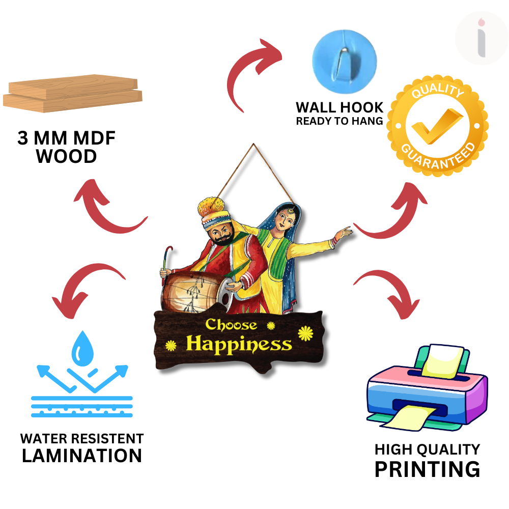 🎉 Add joyful Punjabi vibes to your décor with this vibrant “Choose Happiness” wall hanging! 🥁💛 Featuring a cheerful couple dancing with a dhol, it spreads festive energy and reminds you to celebrate life every day. Perfect for living rooms, entryways, cafés, study corners, or gifting to loved ones for positivity and smiles. 🌼😊 Bring home happiness—by choice! 💫