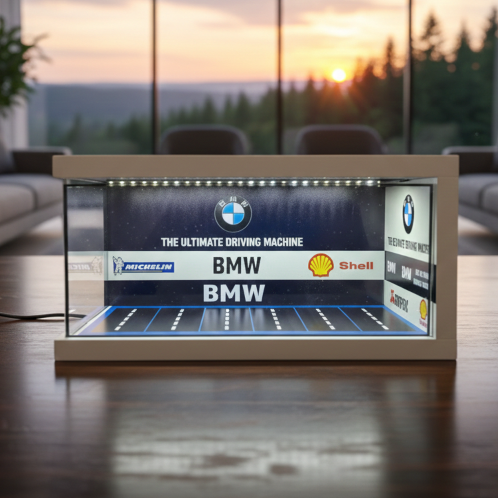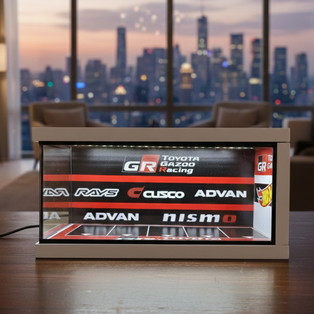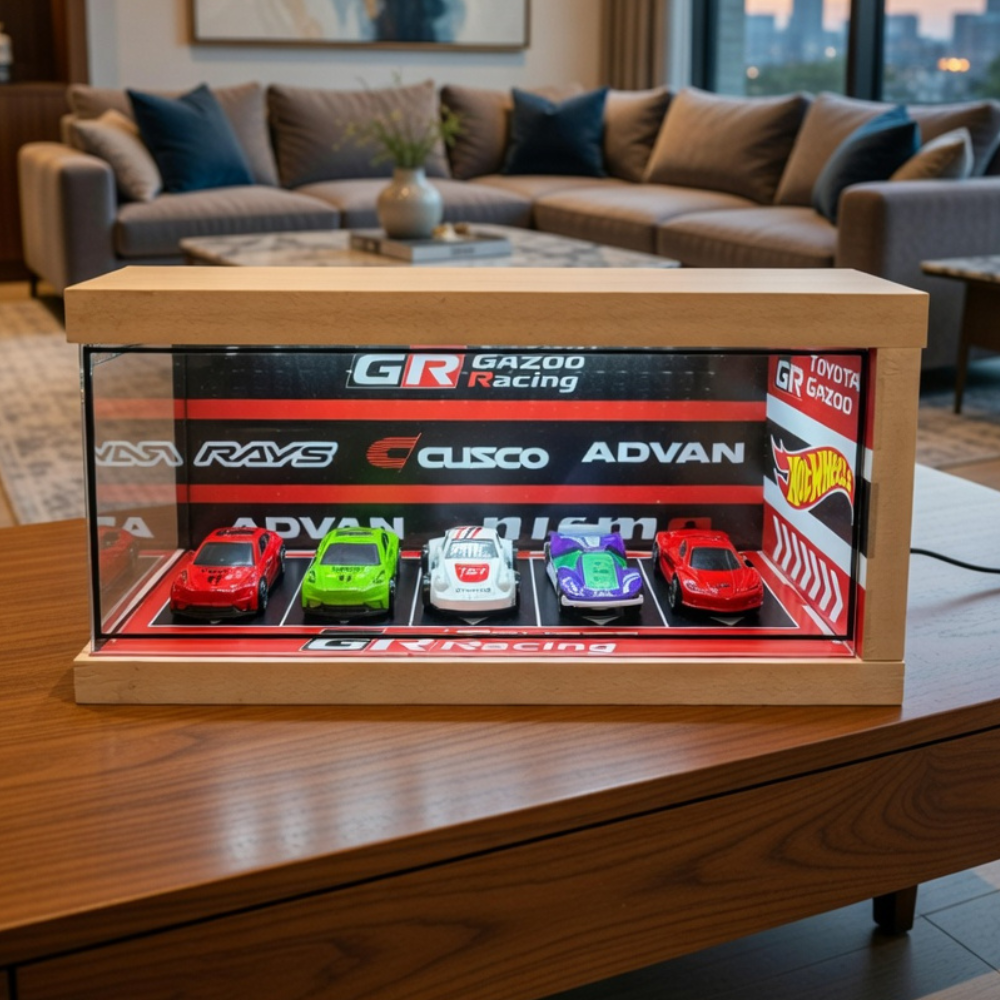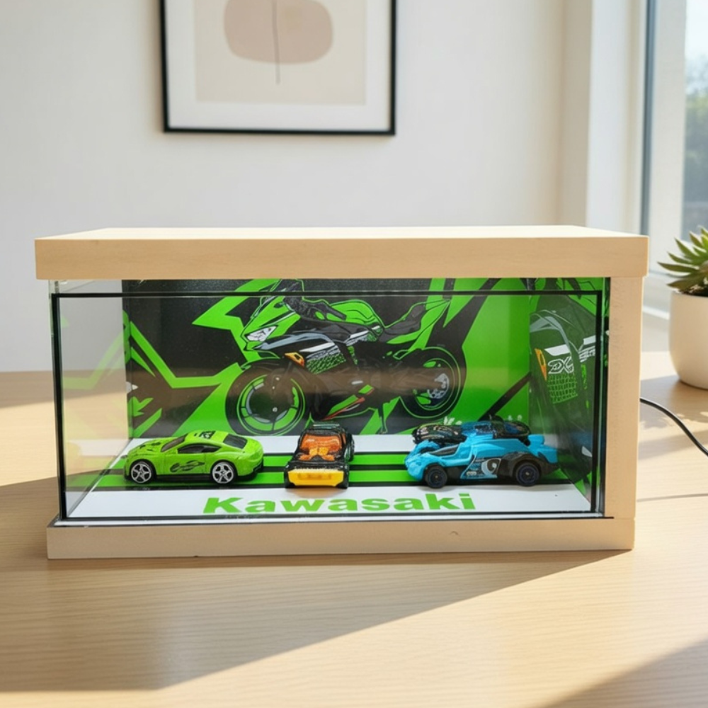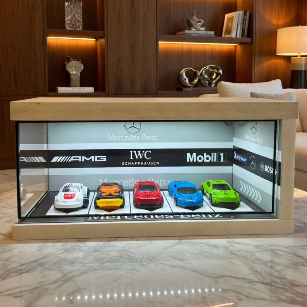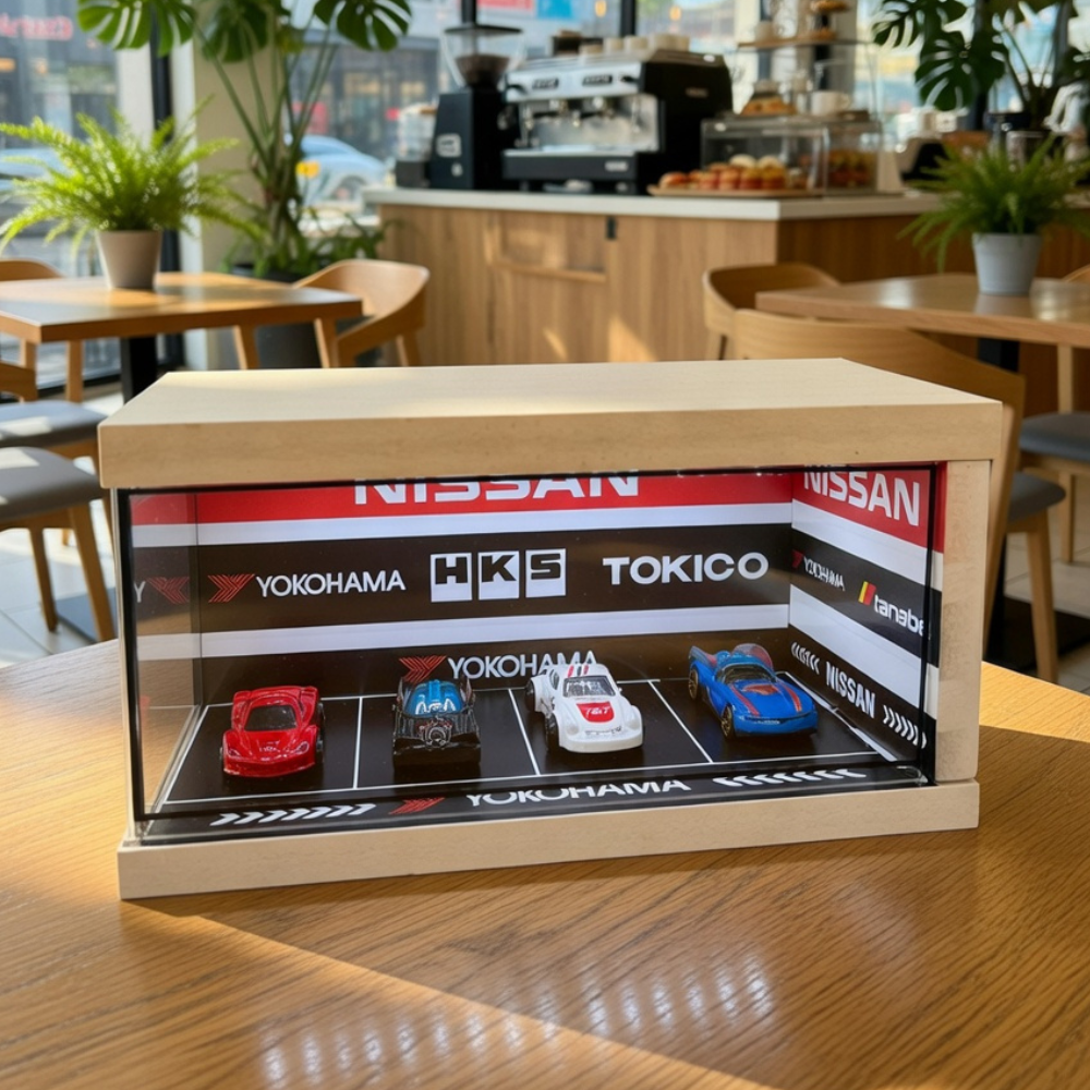 Upgrade your diecast car collection with this premium Car Showroom Diorama 🏁, designed to give a realistic luxury showroom feel. Crafted with a strong wooden frame 🪵 and high-quality printed backdrop, this diorama features bright LED lighting 💡 that highlights every detail of your model cars. Perfect for car collectors, enthusiasts, and gifting 🎁, it turns any shelf or table into a mini showroom. Available in multiple showroom designs and themes, each variant adds a unique visual appeal to your home, office, or display counter.