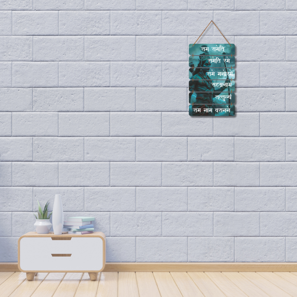 This divine wall hanging showcases Lord Ram with the sacred Sanskrit shloka “राम रामेति रमिति रमे रामे मनोरमे…” reminding devotees of the eternal power of chanting his name. Crafted with a spiritual aura, it adds positivity, devotion, and serenity to your home. Perfect for temples, meditation rooms, or gifting, it inspires faith and inner peace.