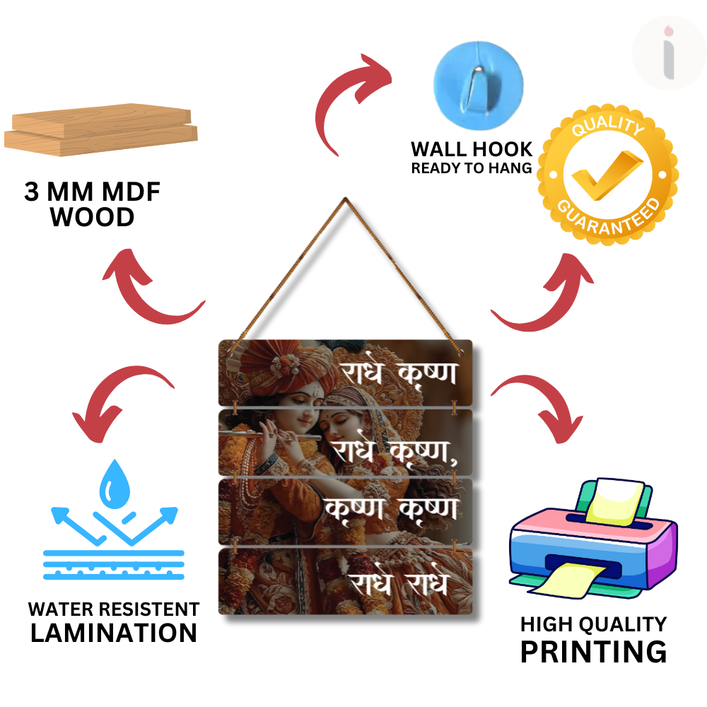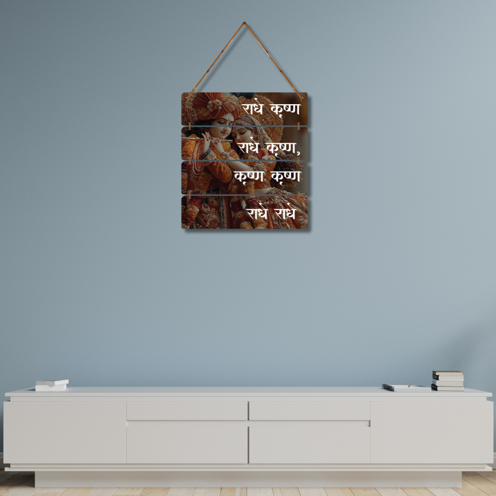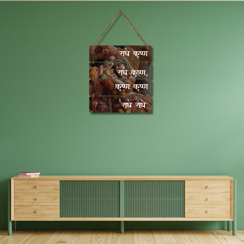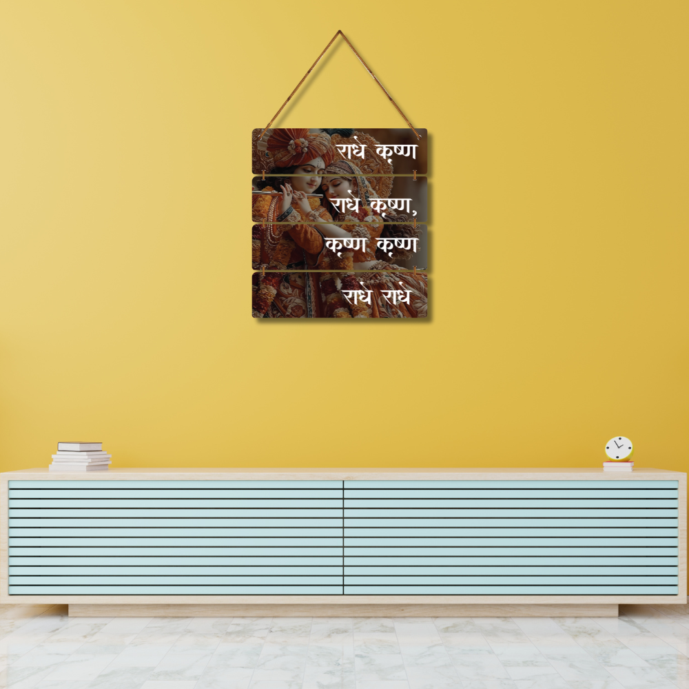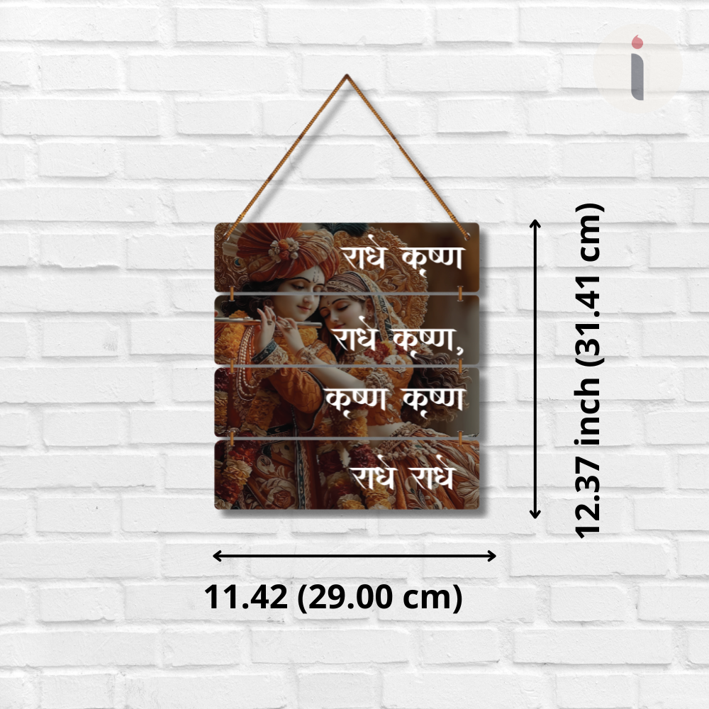 ✨ Bring divine love and serenity into your space with this beautiful Radha Krishna wall hanging. 🎶💛 Featuring an elegant artwork of Radha-Krishna adorned in floral attire, along with the sacred chant "राधे कृष्णा", it creates a spiritual and peaceful aura. 🕉️ Perfect for living rooms, temples, meditation corners, or gifting to spread blessings and devotion. 🙏🌸
