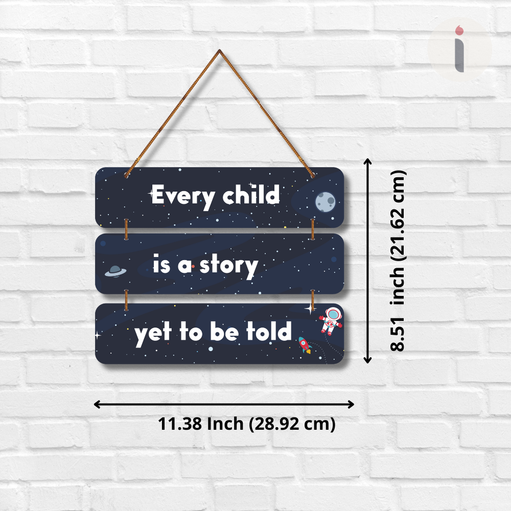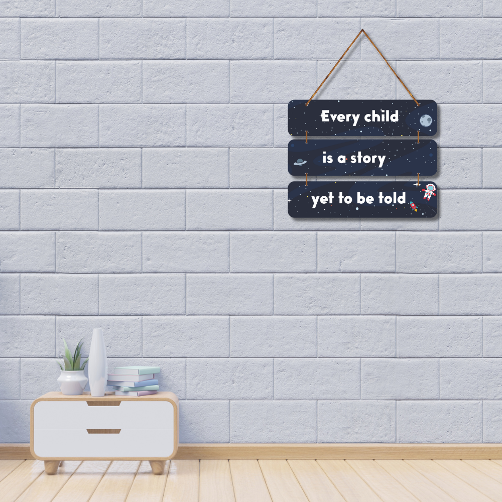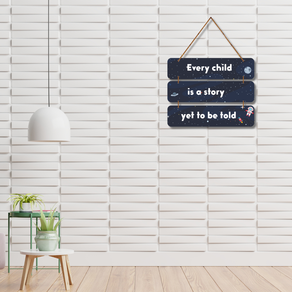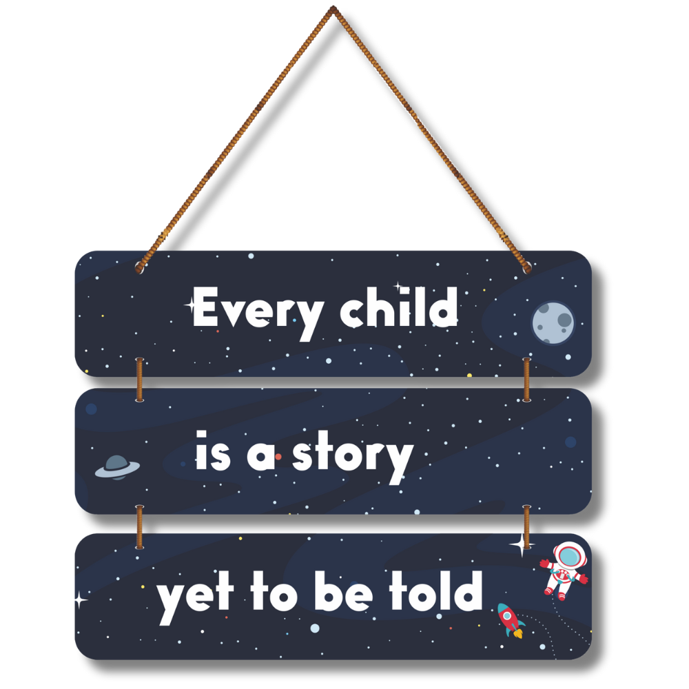 Celebrate the wonder and potential of childhood with this enchanting wall hanging. Designed with a dreamy night-sky theme featuring planets, stars, and a cute little astronaut, it inspires imagination and positivity. Perfect for kids’ rooms, nurseries, or classrooms, this décor piece reminds us that every child carries a unique story waiting to unfold with love and guidance.
