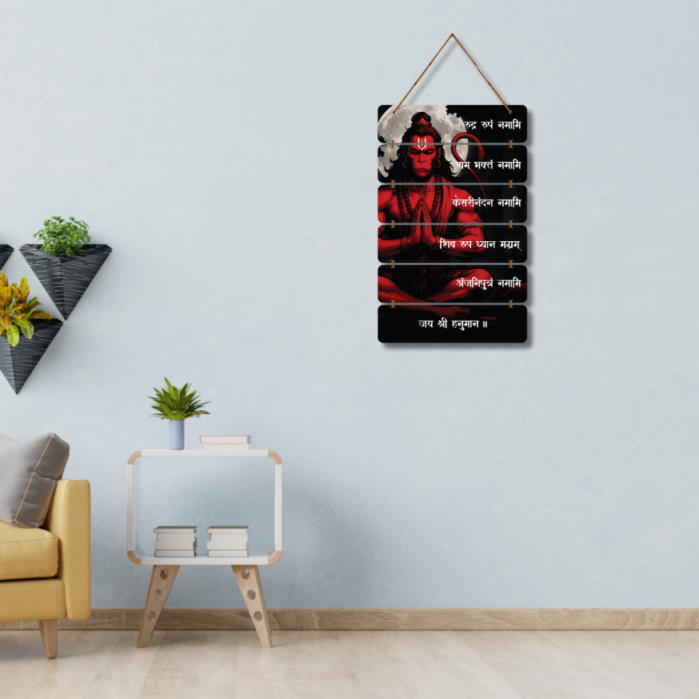 🔥 Invoke strength, power, and devotion with this bold Lord Hanuman wall hanging! 🦁✨ Featuring a striking red-and-black meditative artwork, it includes sacred Sanskrit lines honoring Rudra Roop, Kesarinandan, and Anjaniputra. 🕉️ Perfect for pooja rooms, gyms, meditation corners, or personal spaces where motivation and divine energy are needed. 🚩🙏 Bring home courage and spiritual protection — जय श्री हनुमान!