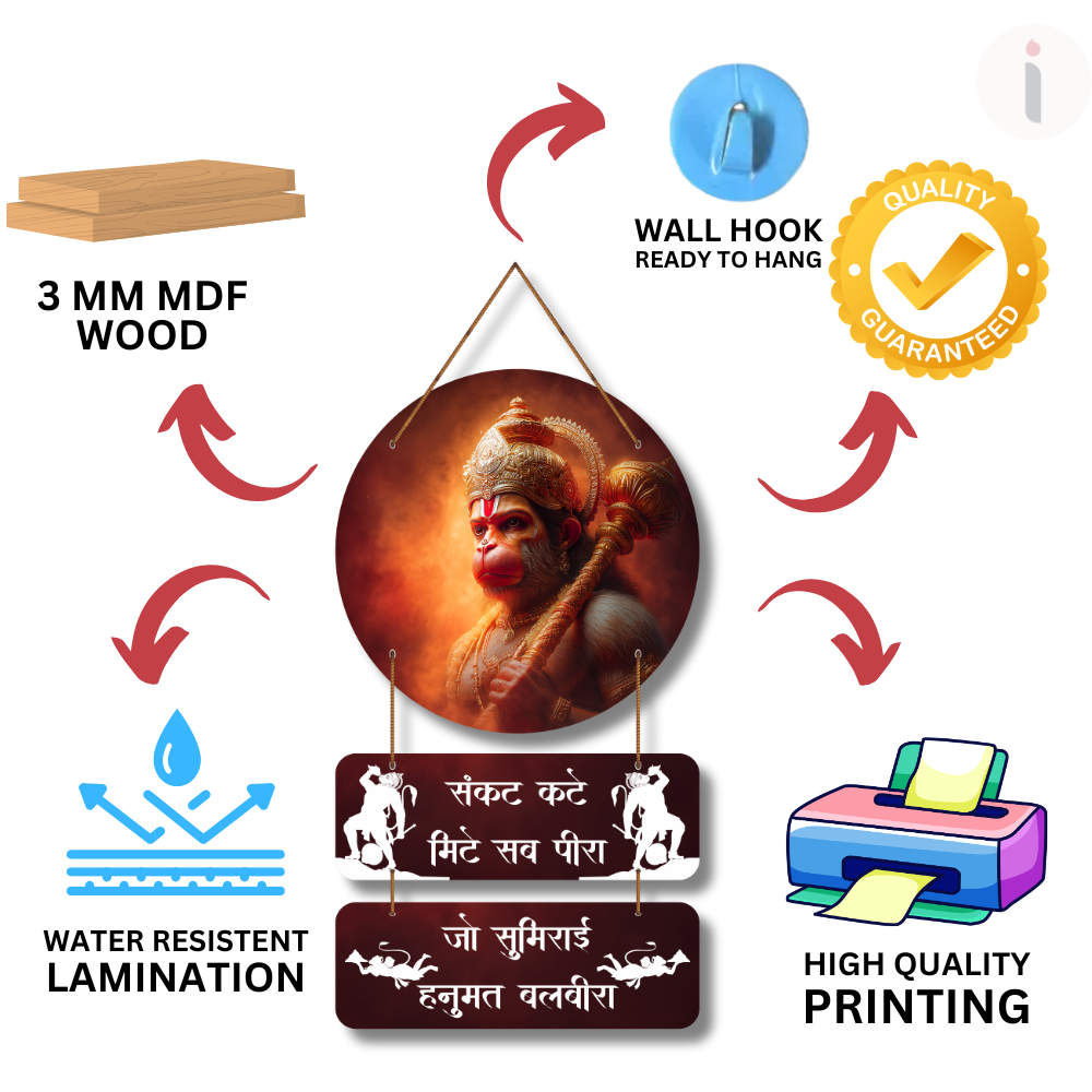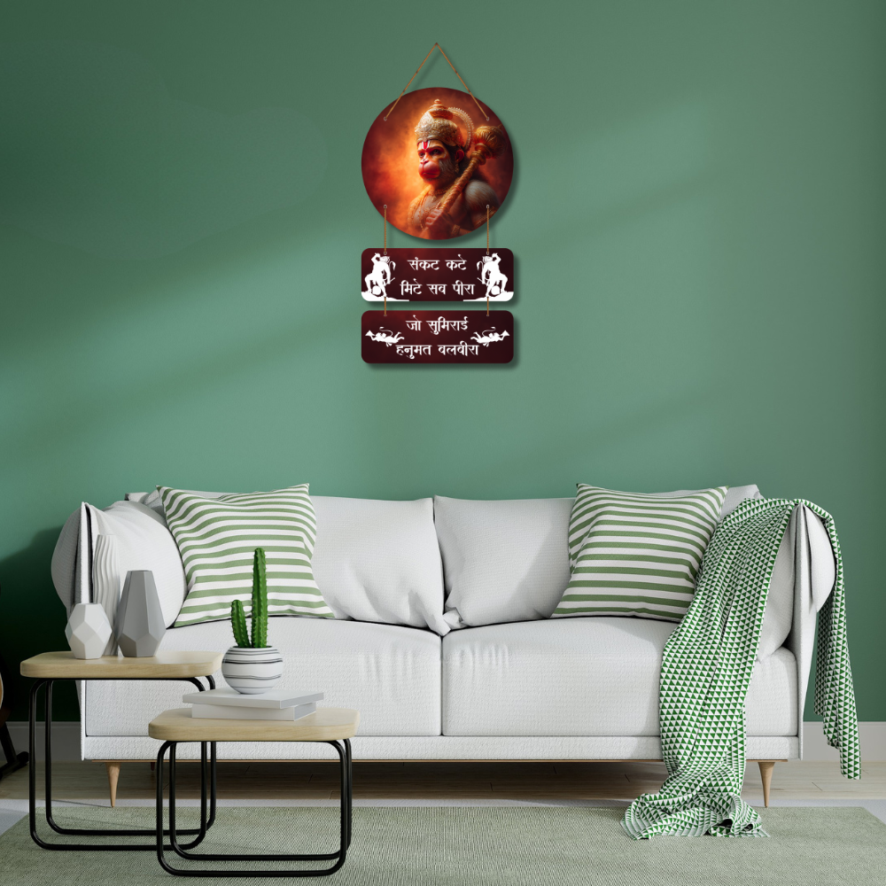 This powerful wall hanging of Lord Hanuman features the sacred verses “संकट कटे मिटे सब पीरा, जो सुमिरै हनुमत बलबीरा,” symbolizing protection and courage. With vibrant artwork and divine presence, it brings strength, positivity, and devotion to your space. A perfect addition for home, temple, or gifting, it inspires faith and wards off negativity.