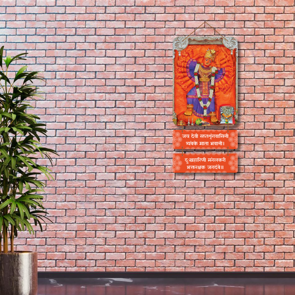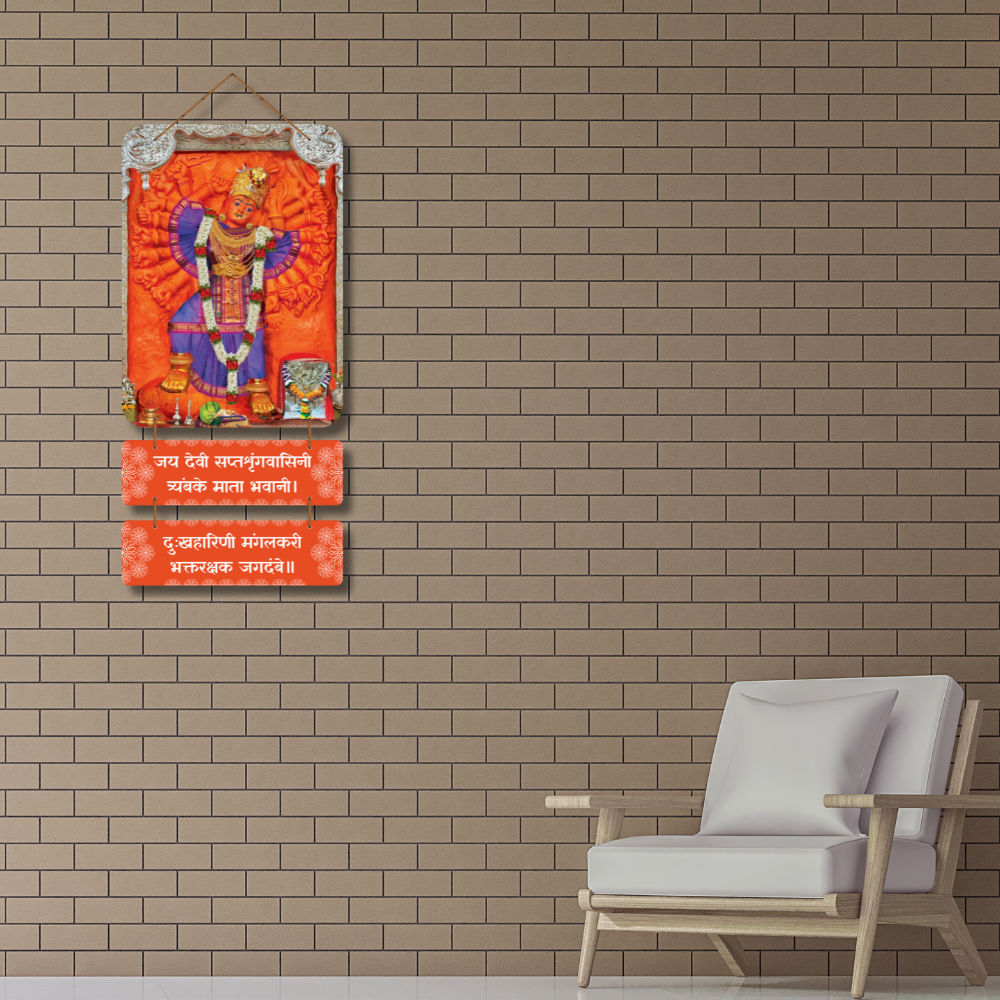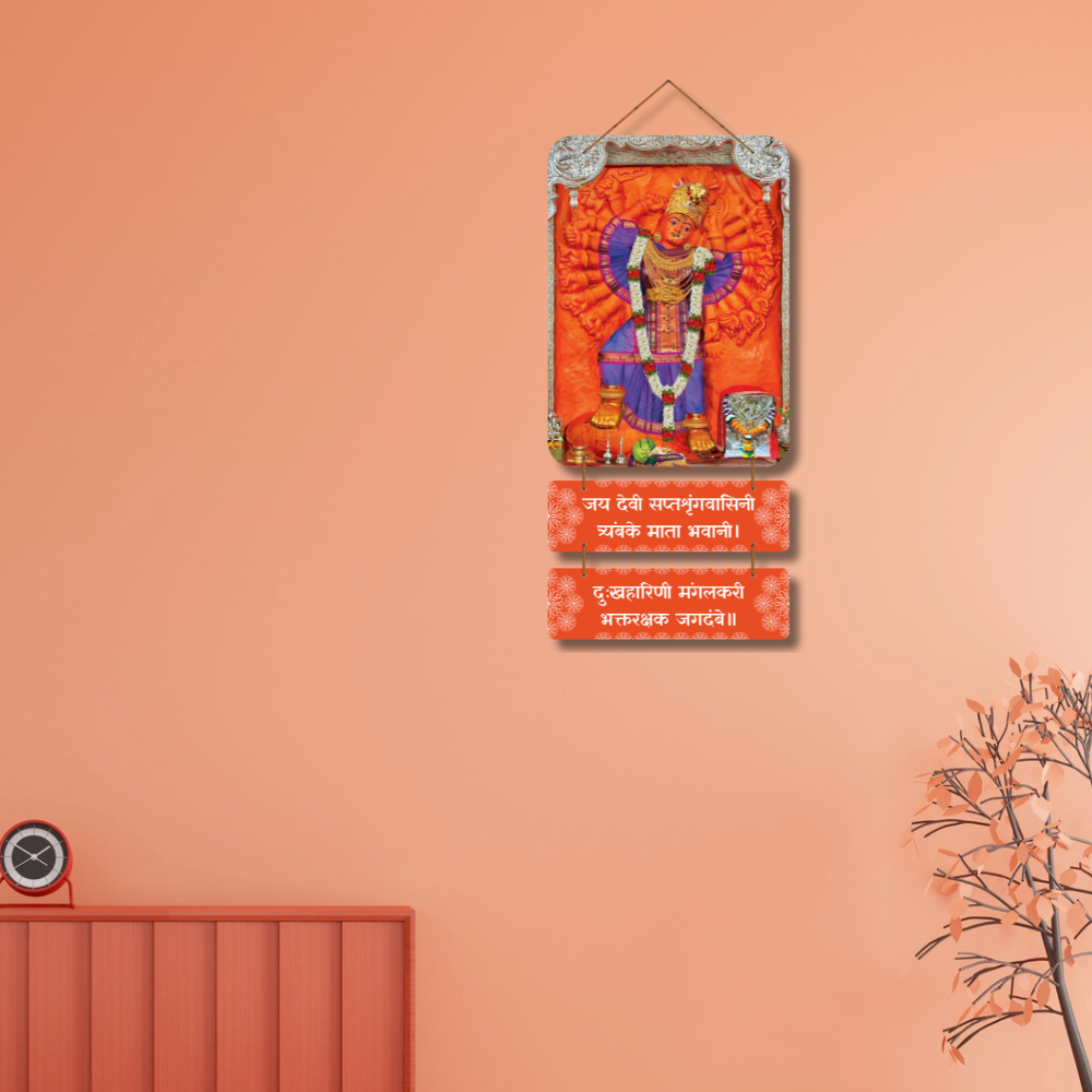 Invoke divine power and protection with this majestic Devi wall hanging 🌺🙏 Featuring Goddess in her radiant Saptashrungi form, it symbolizes strength, compassion, and victory over sorrow. The vibrant orange tones and sacred mantra panels create a powerful spiritual aura, perfect for pooja rooms, entrances, or festive décor 🪔✨