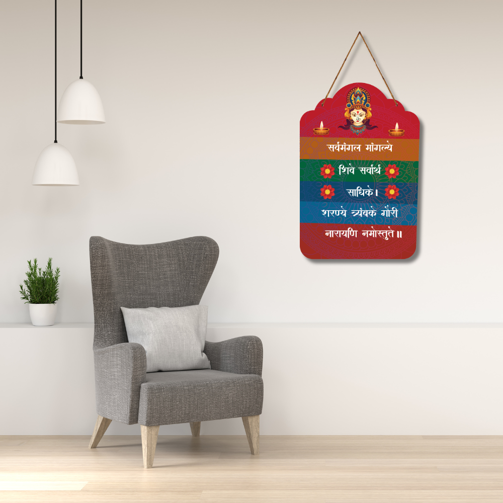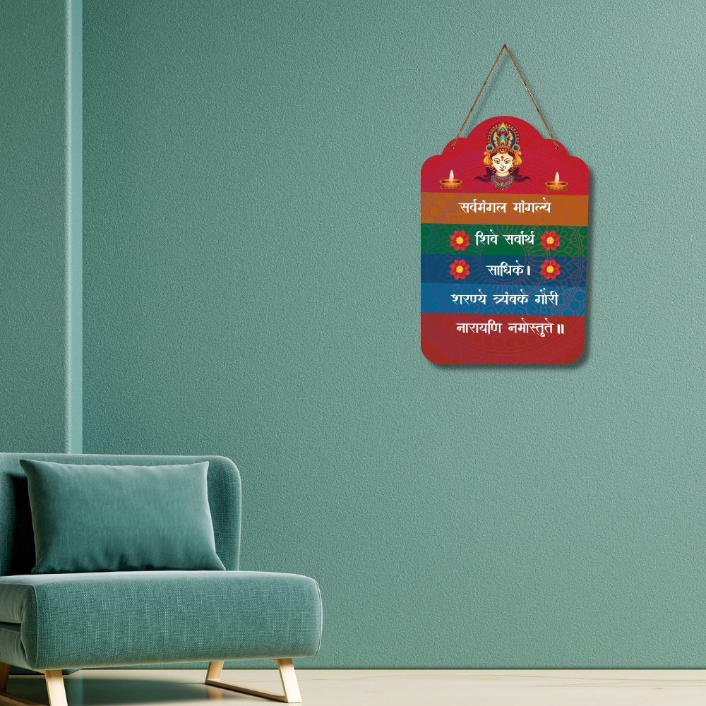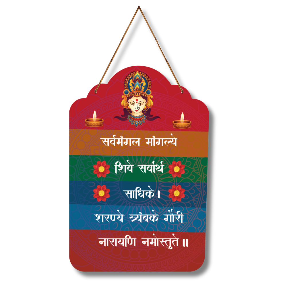 🌺 Fill your home with divine grace and auspicious energy through this beautiful Goddess Durga wall hanging. 🪔✨ Adorned with vibrant colors, glowing diyas, and sacred Sanskrit shlokas, it invokes protection, prosperity, and inner strength. Perfect for pooja rooms, living spaces, festive décor, or gifting blessings during Navratri and special occasions. 🙏🌸 Let Maa Durga’s blessings bring harmony and positivity every day.