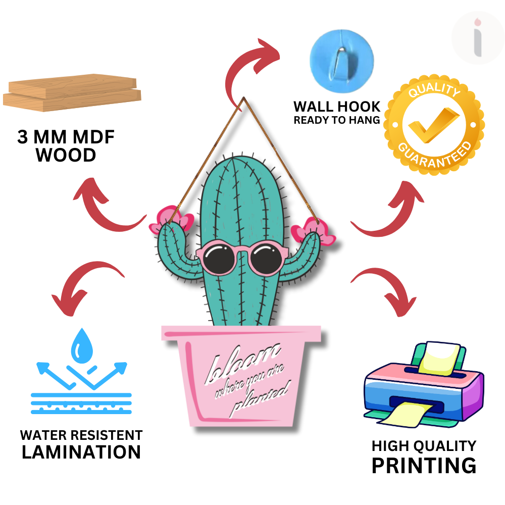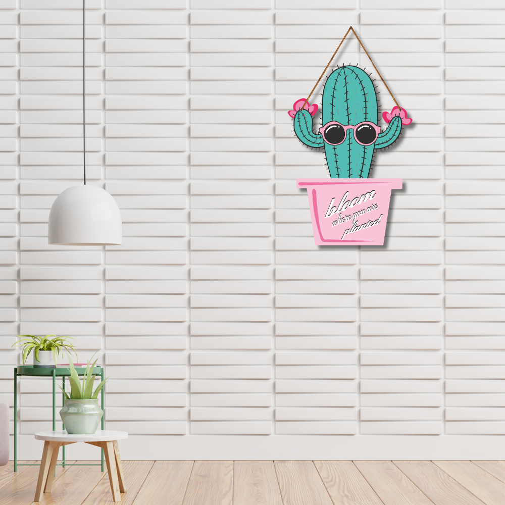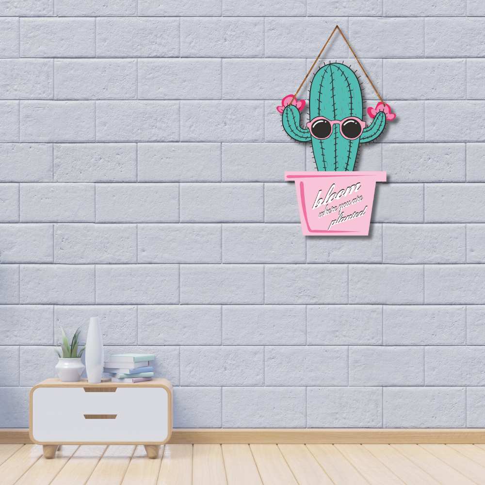 Add a touch of fun and positivity to your décor with this quirky wooden wall hanging featuring a cool cactus wearing sunglasses and the motivational quote “Bloom where you are planted.” With its playful design and vibrant colors, it’s perfect for bedrooms, living rooms, offices, or gifting. This piece brings cheerful vibes and inspiration to any space.
