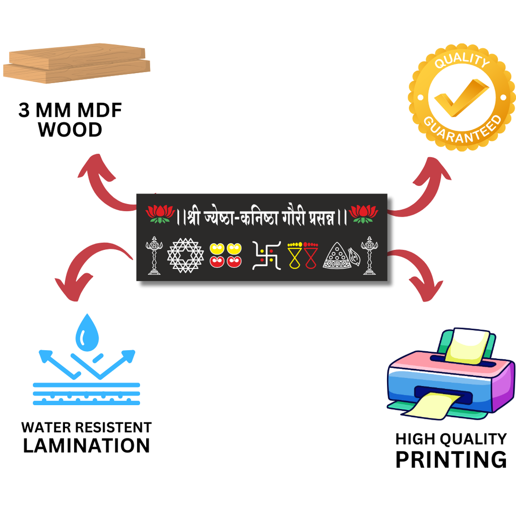 Crafted using premium-quality wood, this name plate delivers durability, a smooth finish, and a rich aesthetic suited for all kinds of home interiors—traditional as well as contemporary. The slim, elegant rectangular structure makes it easy to place above doors, on flat walls, or near your worship area without occupying much space, yet adding immense spiritual charm.