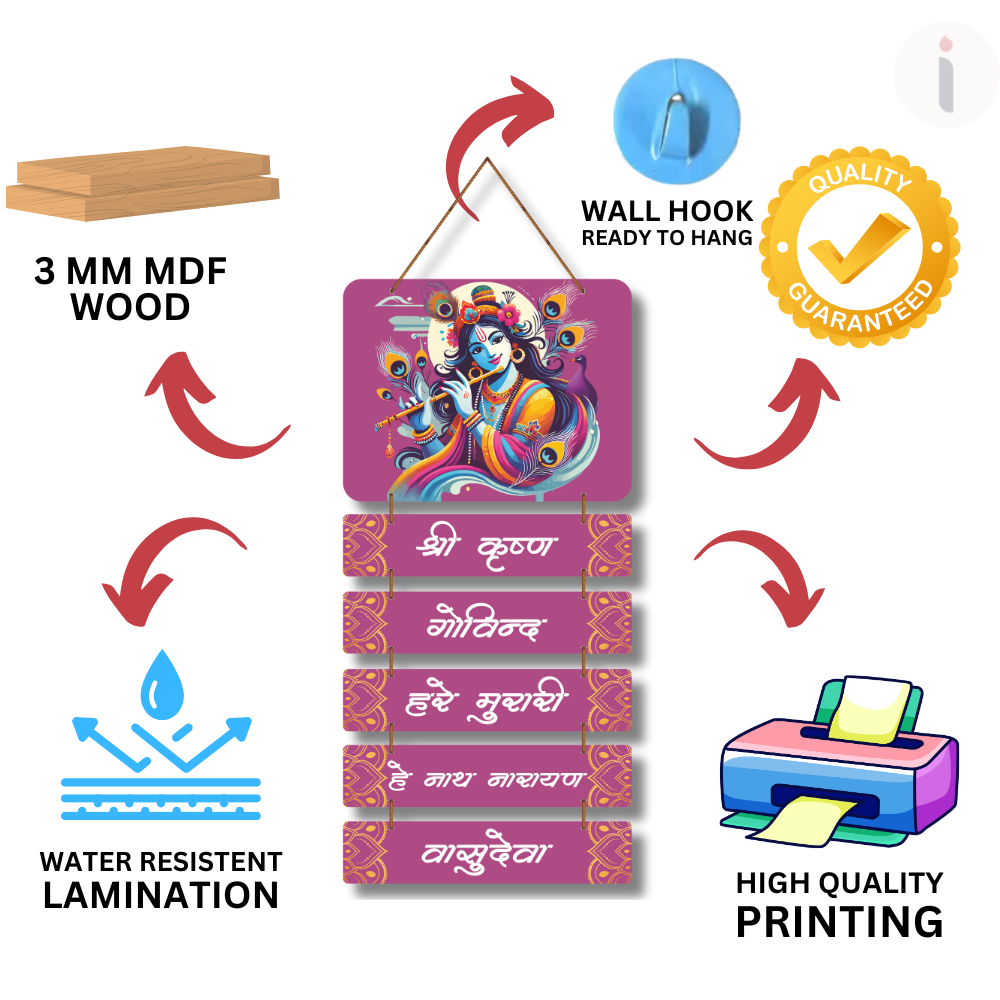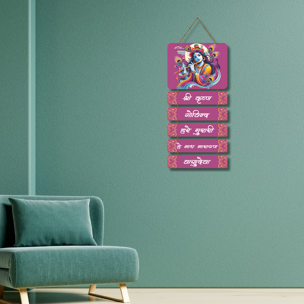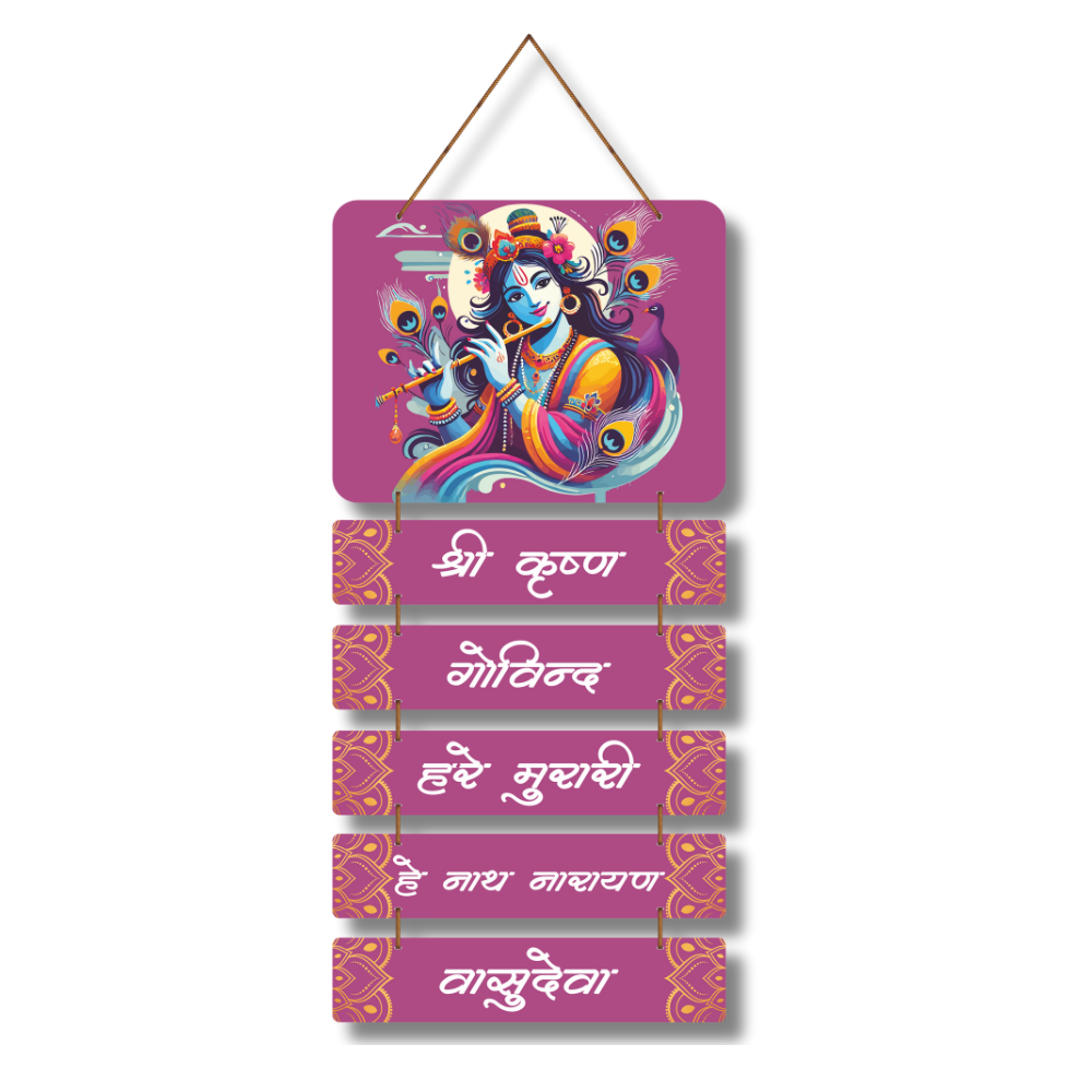 Add divine beauty and devotion to your home with this Shree Krushn Govinday Hare Murari Wooden Wall Hanging 🦚💜. Featuring a vibrant artistic illustration of Lord Krishna and sacred mantra lines, it fills your space with peace, love, and positive energy ✨🙏. Perfect for pooja rooms, living areas, meditation corners, and gifting 🎁🏡 — a colorful expression of Krishna’s grace and blessings 🌸💫.