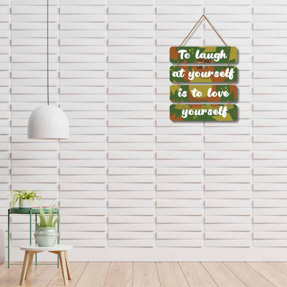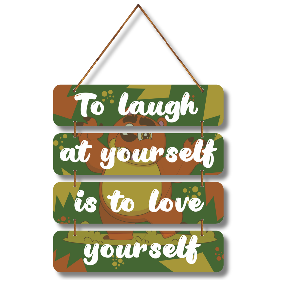 This cheerful wall hanging carries the uplifting message, “To laugh at yourself is to love yourself.” Designed with playful colors and a fun cartoon bear, it adds positivity and charm to any space. A perfect décor piece for bedrooms, kids’ rooms, or study corners, it inspires confidence, self-love, and the joy of embracing imperfections.