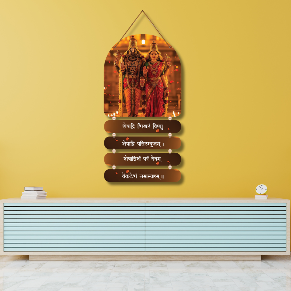 ✨ Invite divine harmony and prosperity into your home with this graceful Lord Vishnu–Maa Lakshmi wall hanging. 🌸🪔 Depicting the sacred couple in a temple-inspired glow, it symbolizes wealth, protection, and balance. Adorned with powerful Sanskrit shlokas, this piece is perfect for pooja rooms, living spaces, offices, or as an auspicious gift for blessings, abundance, and spiritual peace. 🙏💛