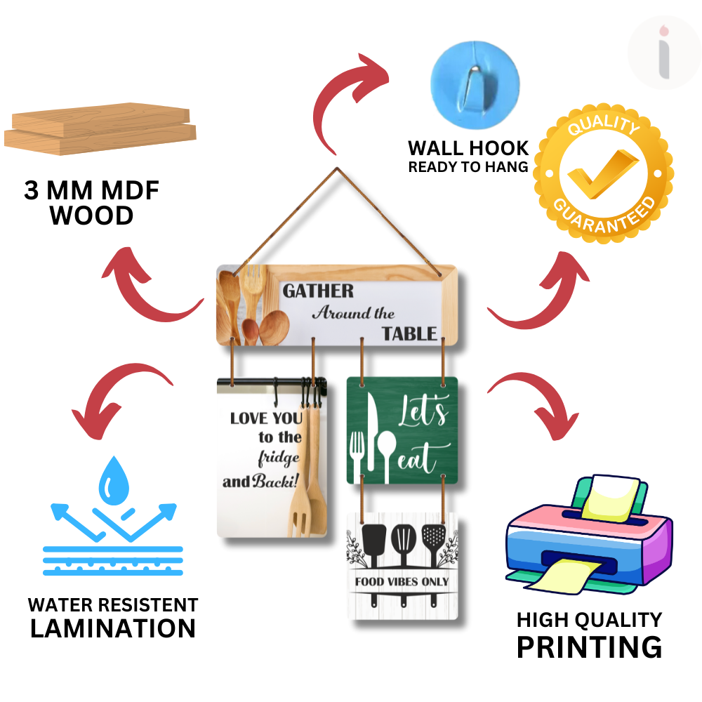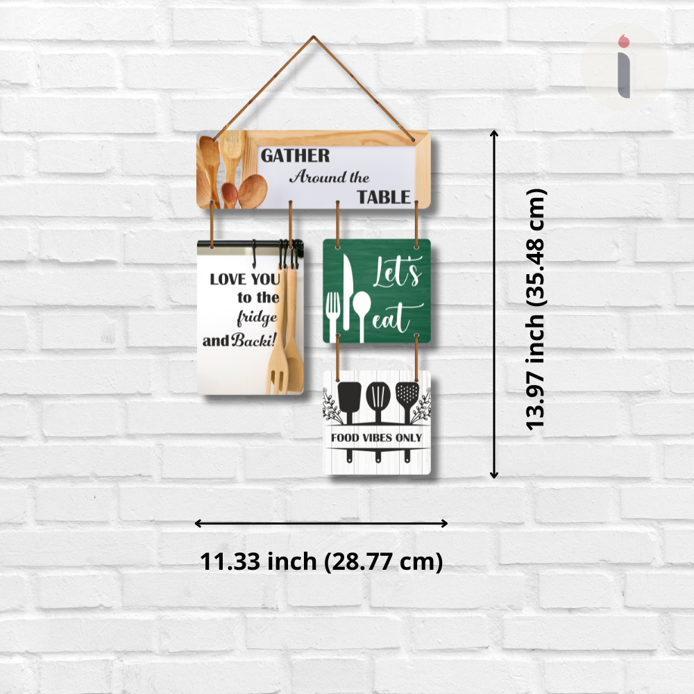 Charm and warmth to your dining space with this delightful multi-panel kitchen wall hanging. Featuring playful quotes like “Let’s Eat” and “Food Vibes Only”, it inspires laughter, love, and togetherness around the table. Perfect for kitchens and dining rooms, this décor makes mealtime more joyful and inviting.
