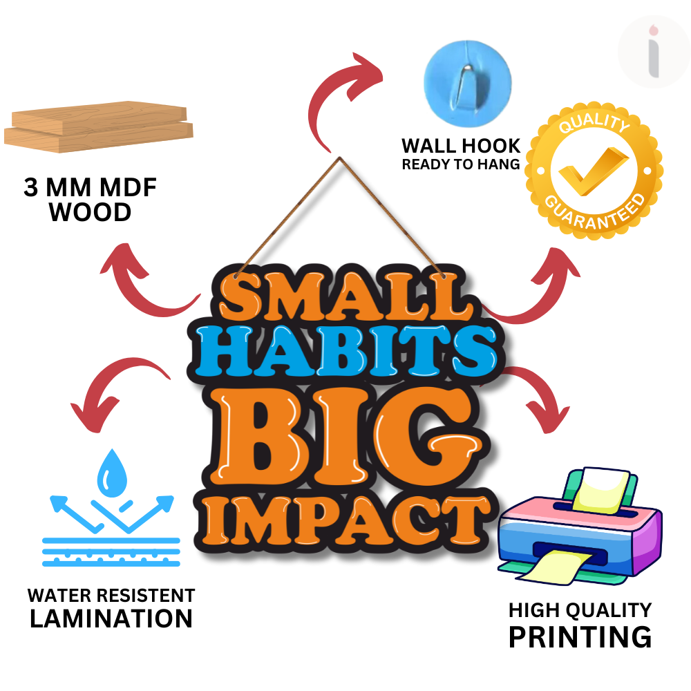 Create daily motivation with this Small Habits Big Impact Wall Hanging 🌟🪵. Designed with bold colors and powerful words, it reminds you that consistent small actions lead to big success 💪📈. Perfect for home, office, study room, or workspace, this wooden wall décor inspires discipline, positivity, and personal growth every single day 🌱✨.