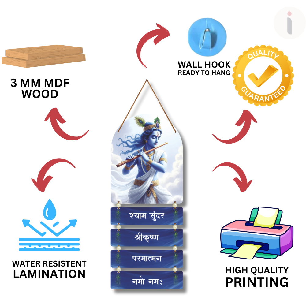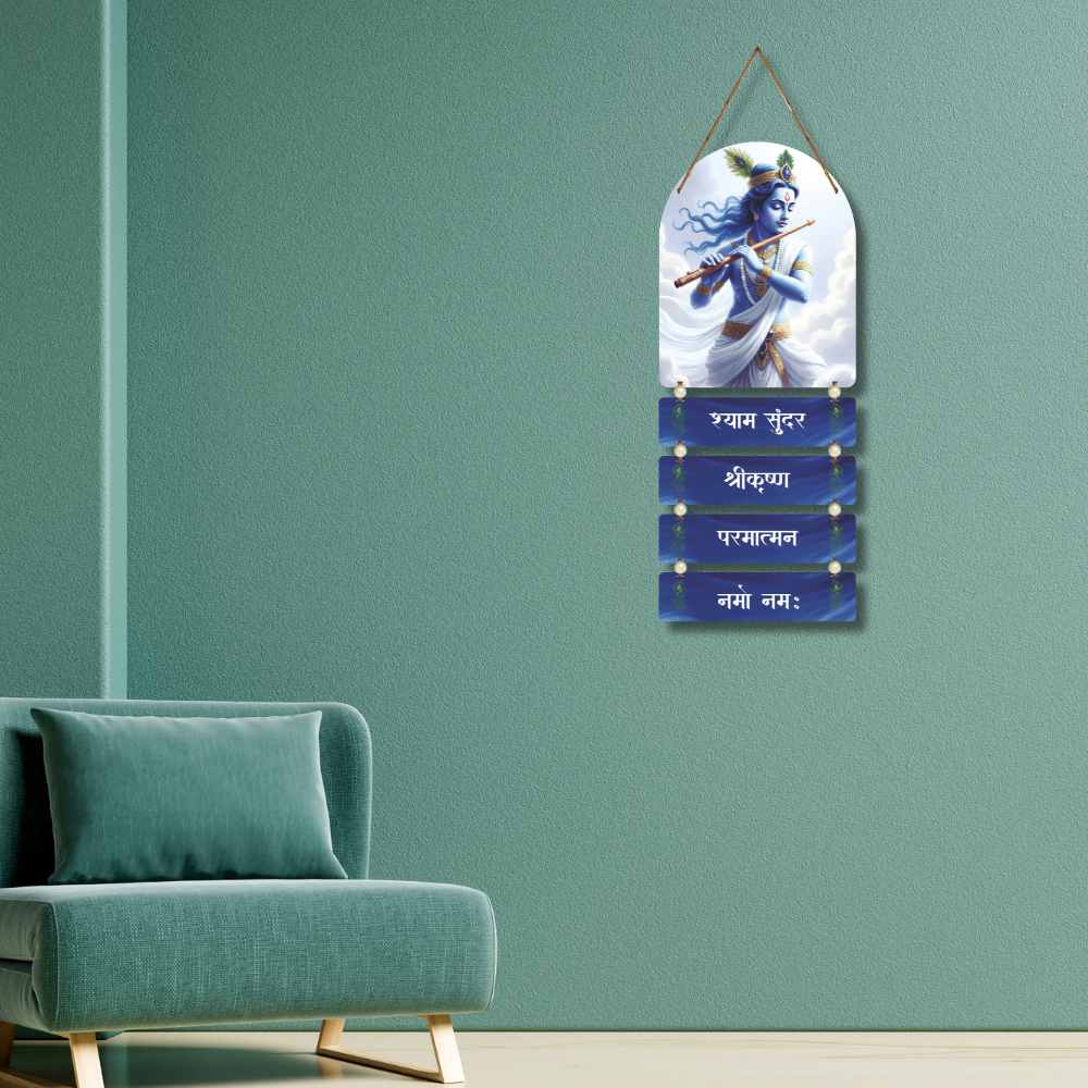 ✨ Experience divine calm and devotion with this elegant Lord Krishna wall hanging. 🦚🎶 Depicting Shyam Sundar playing the flute amidst soft clouds, it radiates peace, love, and spiritual bliss. The soothing blue tones and sacred Sanskrit text make it perfect for homes, pooja rooms, meditation spaces, or as a thoughtful spiritual gift. 🙏💙
