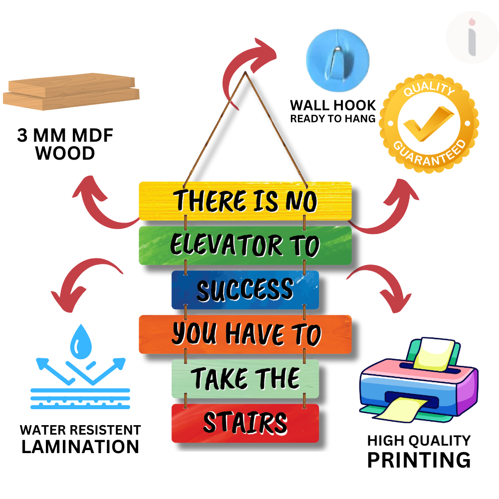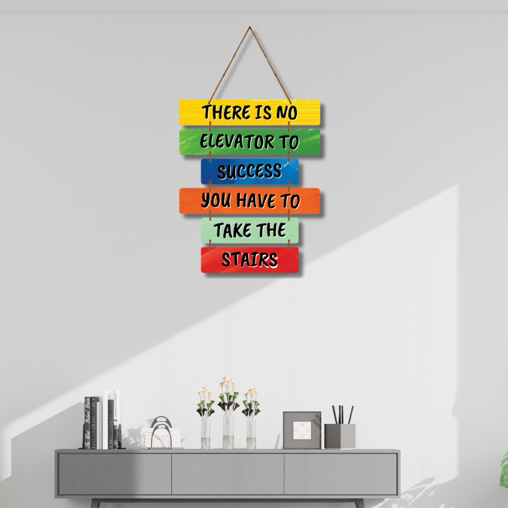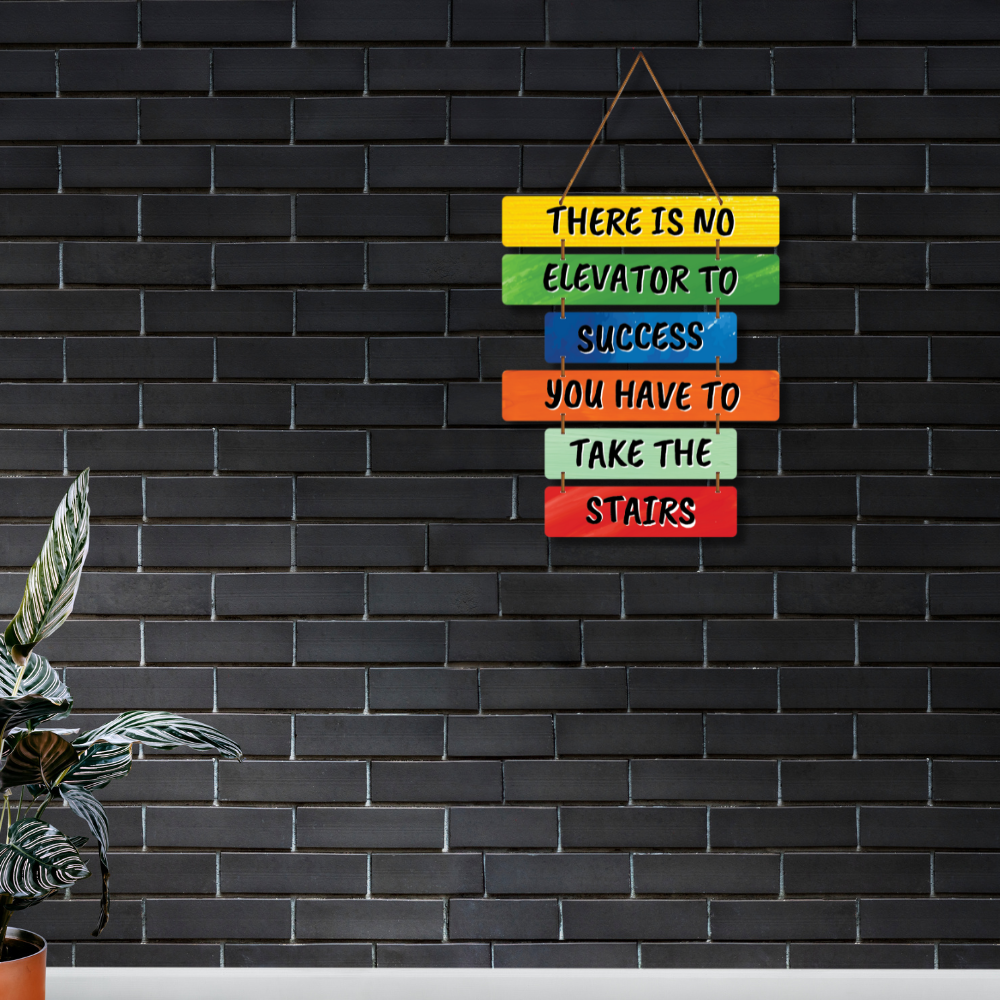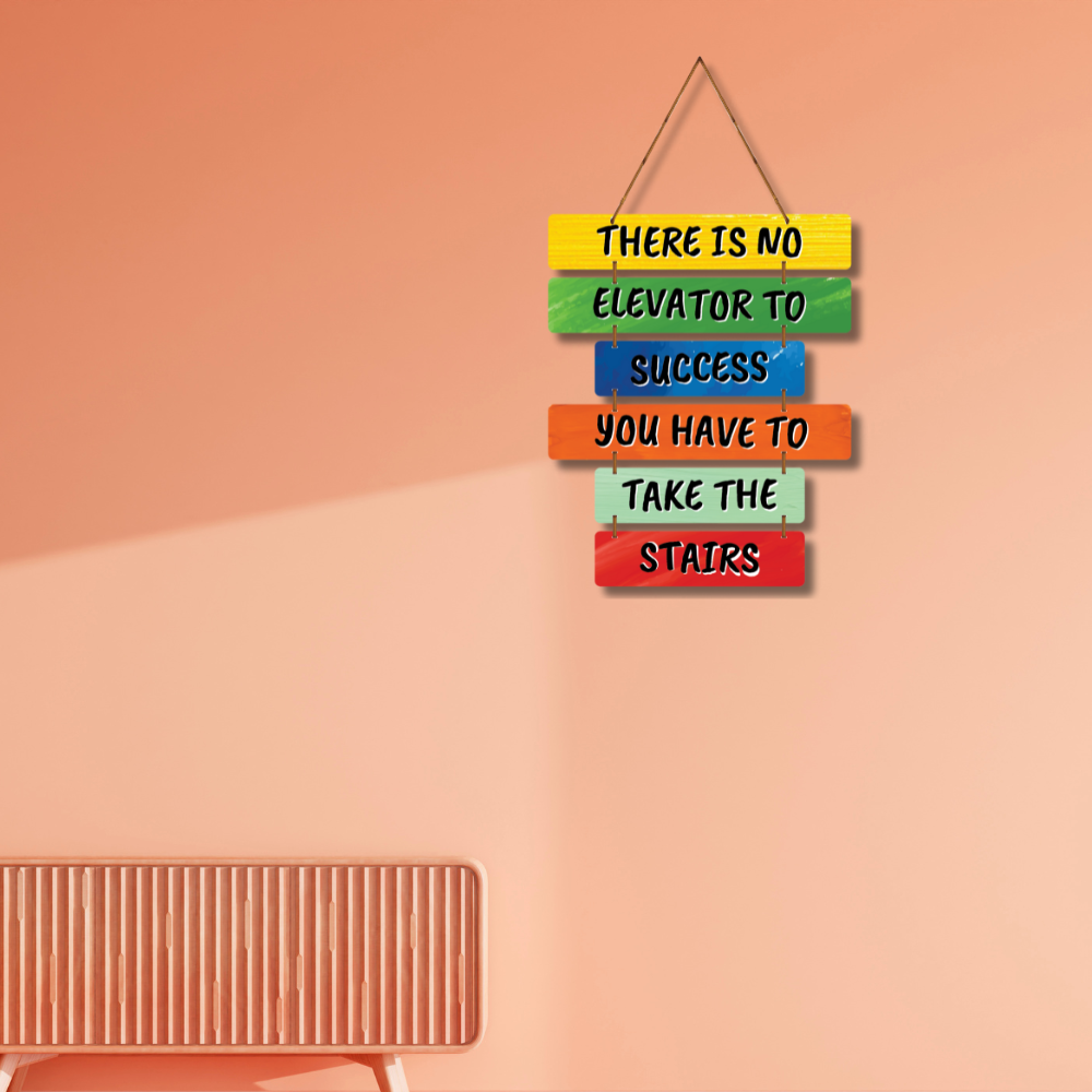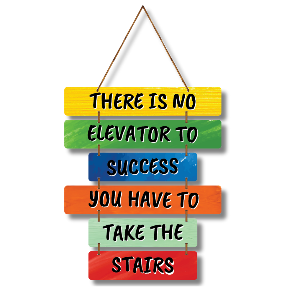 Add a burst of motivation to your walls with this vibrant wooden wall hanging 🌈🚀. Featuring the powerful quote “There is no elevator to success, you have to take the stairs”, it inspires hard work and persistence 💪🔥. Perfect for offices, study rooms, or gyms, this colorful décor keeps your goals in focus every day 🏆✨.