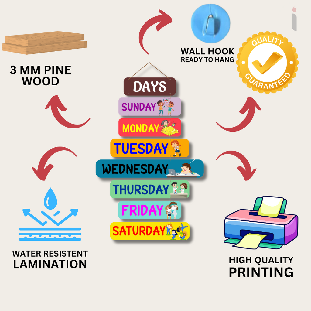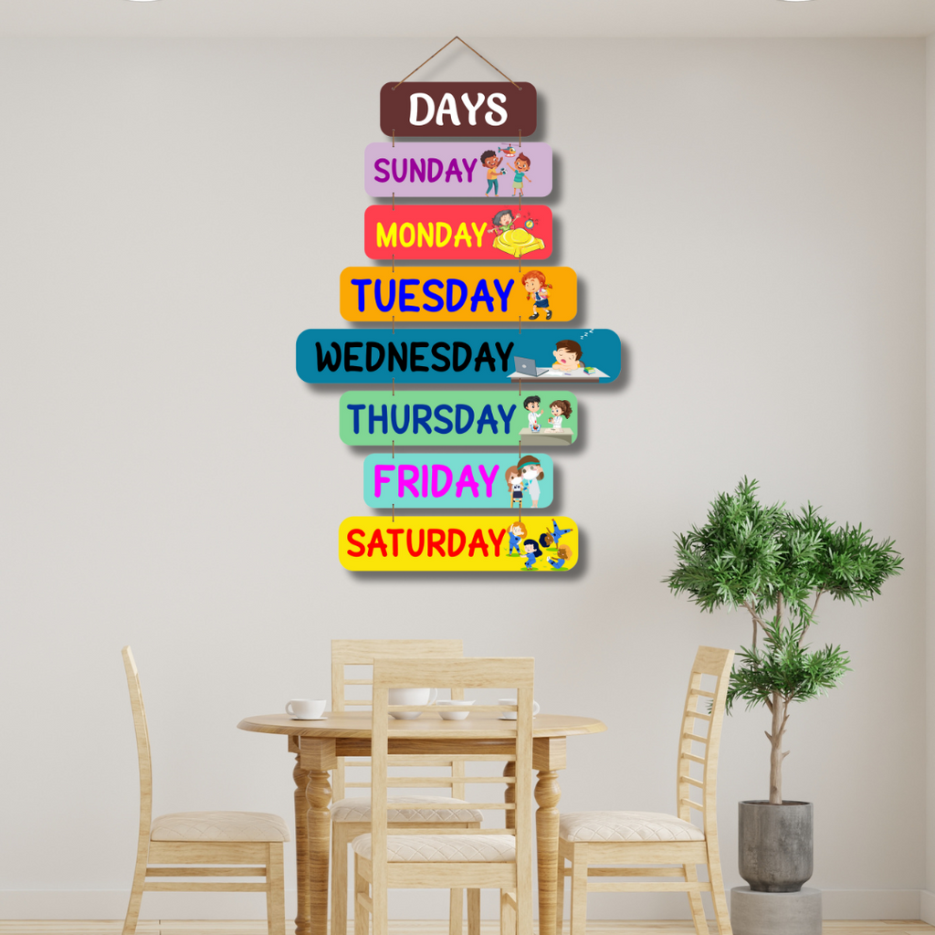 This "Sunday to Saturday" wooden wall hanging is a beautifully crafted décor piece designed to keep your weekly schedule organized. Made from high-quality wood with an elegant finish, it’s perfect for planning tasks, reminders, or quotes for each day. Ideal for homes, offices, or study spaces, it adds both functionality and aesthetic charm.