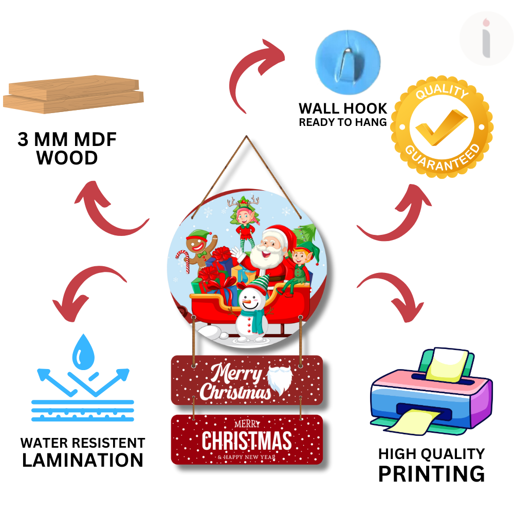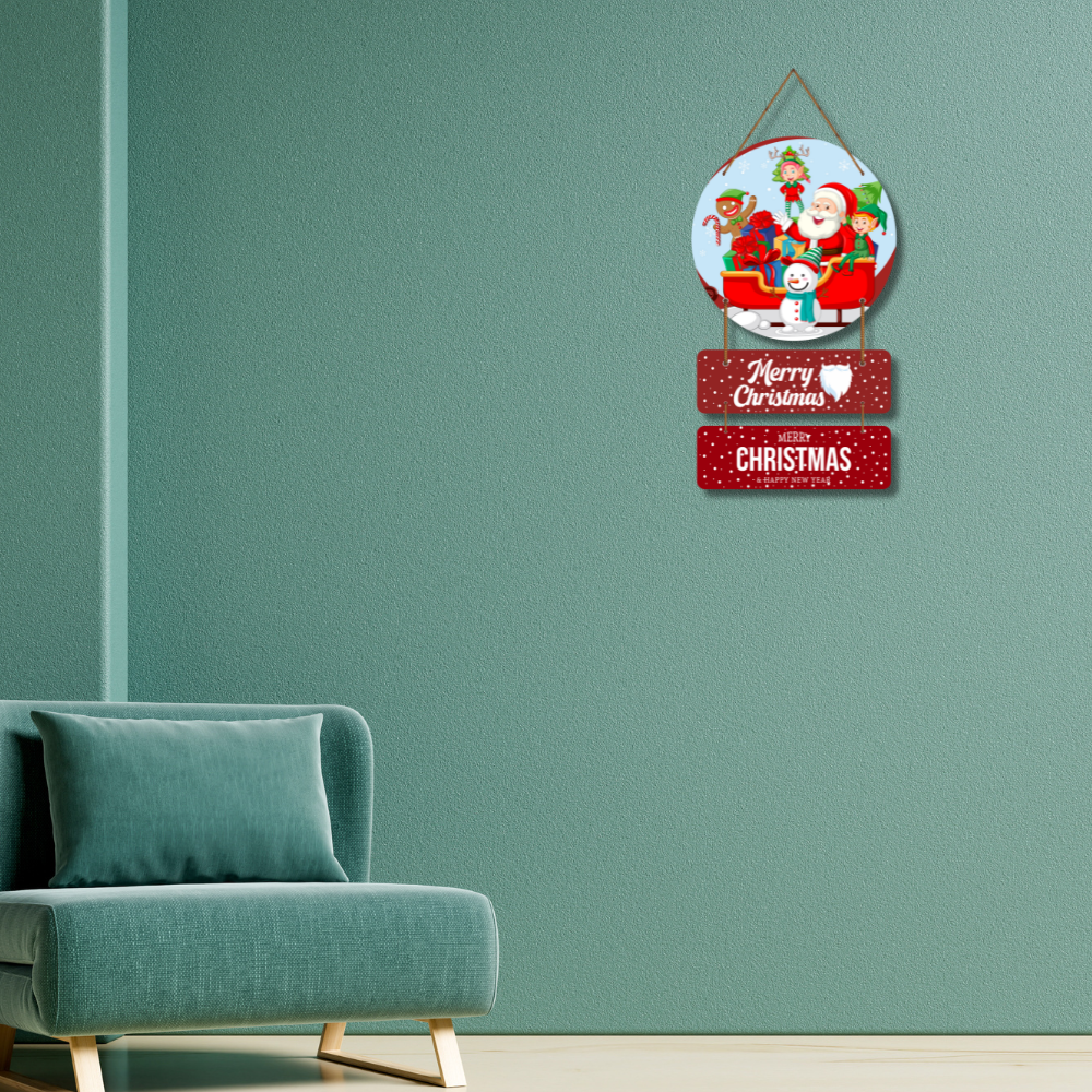 Celebrate the joy of Christmas with this delightful wall hanging featuring Santa Claus, cheerful elves, and a happy snowman surrounded by gifts. The vibrant design with “Merry Christmas & Happy New Year” wishes spreads festive cheer and warmth. Perfect for decorating your home, office, or gifting, this piece brings the magic and happiness of the holiday season alive.