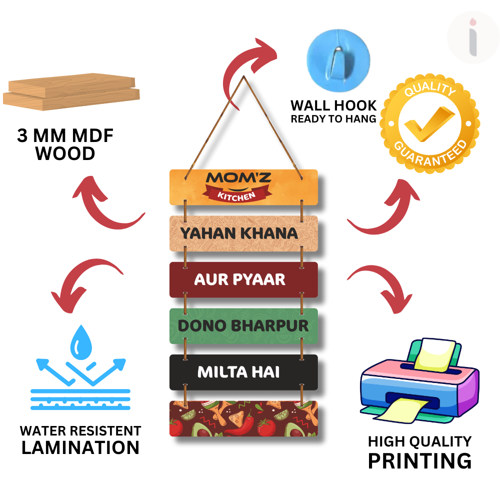 Add warmth and love to your kitchen with this charming wall hanging that says, “Yahan khana aur pyaar dono bharpur milta hai.” A perfect blend of food and emotions, it beautifully reflects the essence of homemade meals. Ideal for kitchens and dining areas, this décor piece spreads joy, comfort, and the heart-touching feeling of Mom’s love.